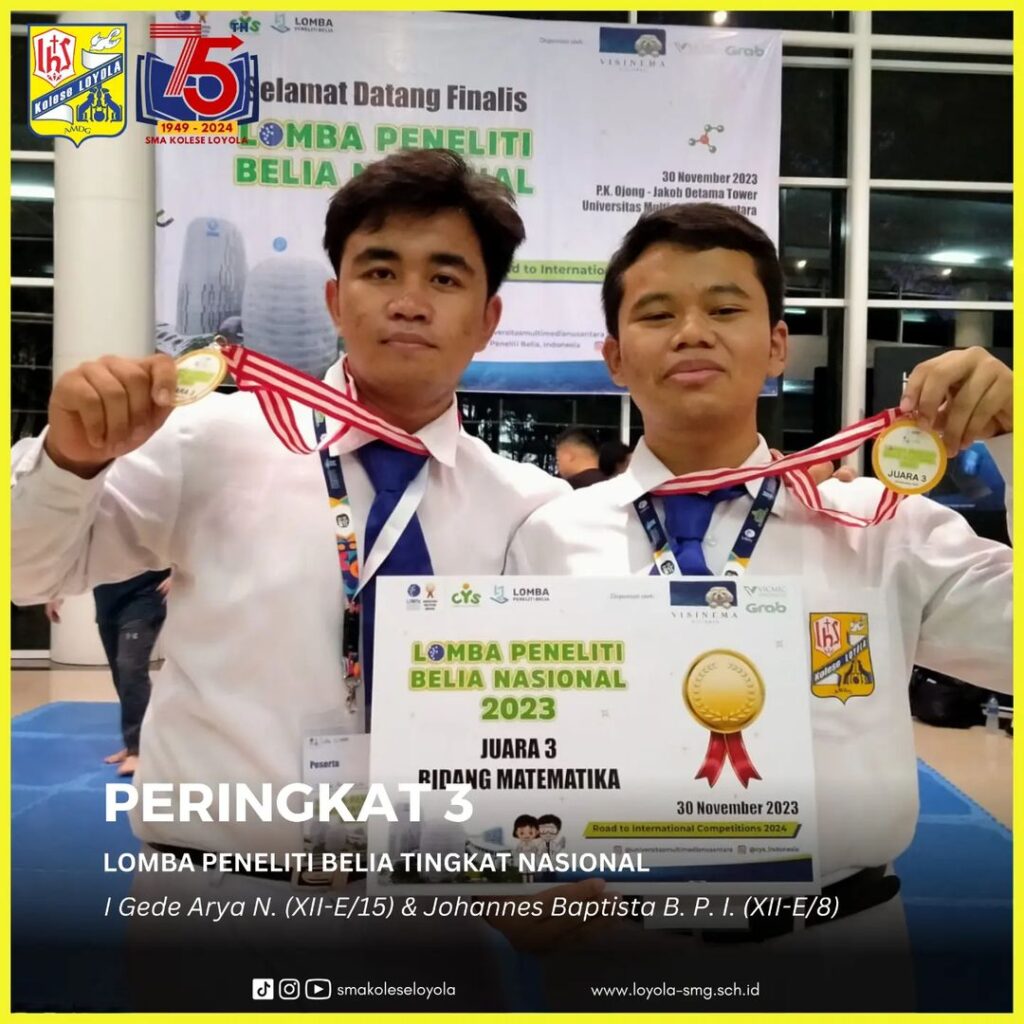 Selamat kepada I Gede Arya N. (XII-E/15) dan Johannes Baptista B. P. I. (XII-E/20) telah meraih peringkat 3 dalam Lomba Peneliti Belia Nasional 2023 bidang matematika dengan judul karya …