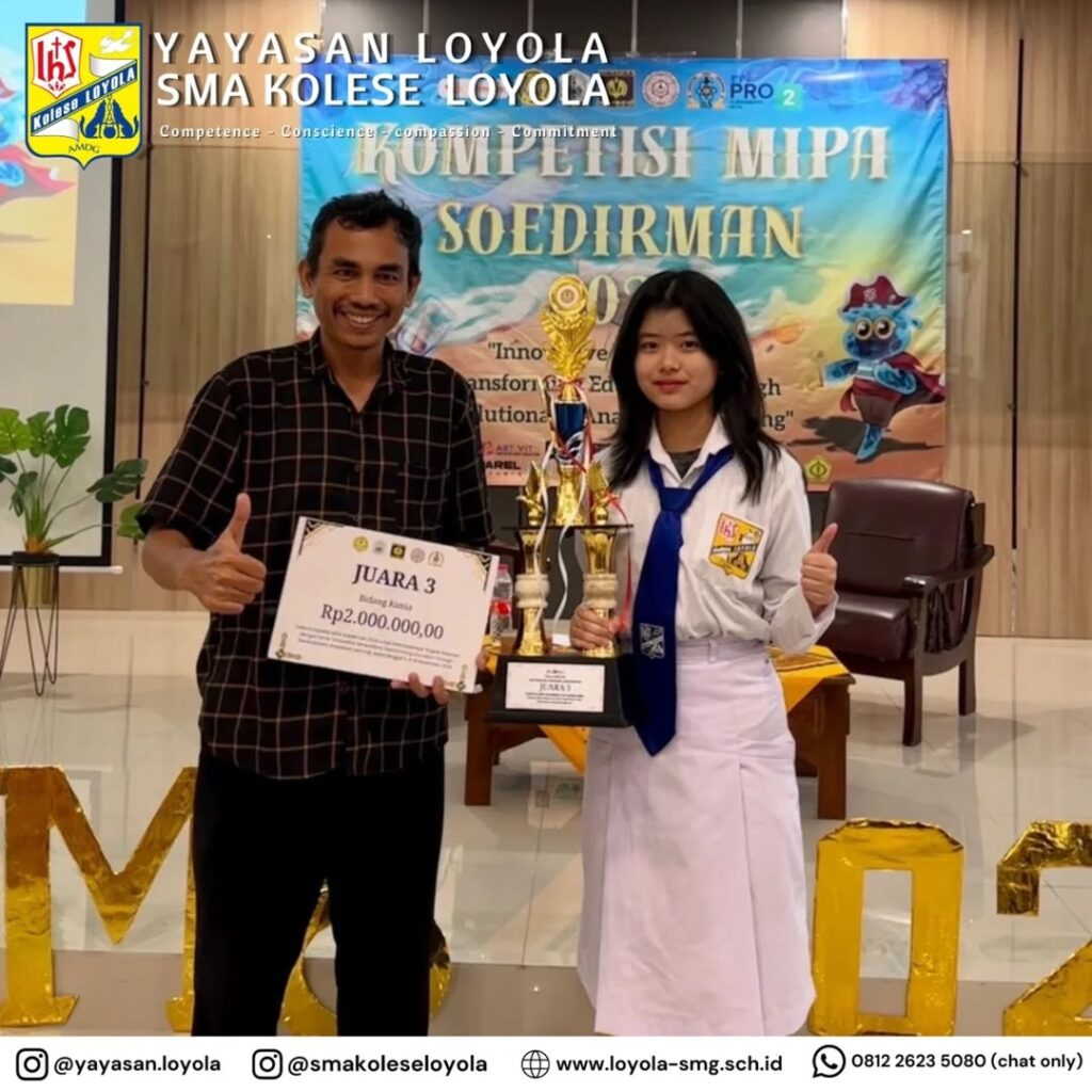 Proficiat bagi Nathania Airynne Y ( XI E/31) berhasil meraih juara 3 dalam lomba Kimia yang diselenggarakan Universitas Jenderal Soedirman (Unsoed) pada Sabtu, 16 November 2024. Pendamping: Bapak Joko. AMDG …