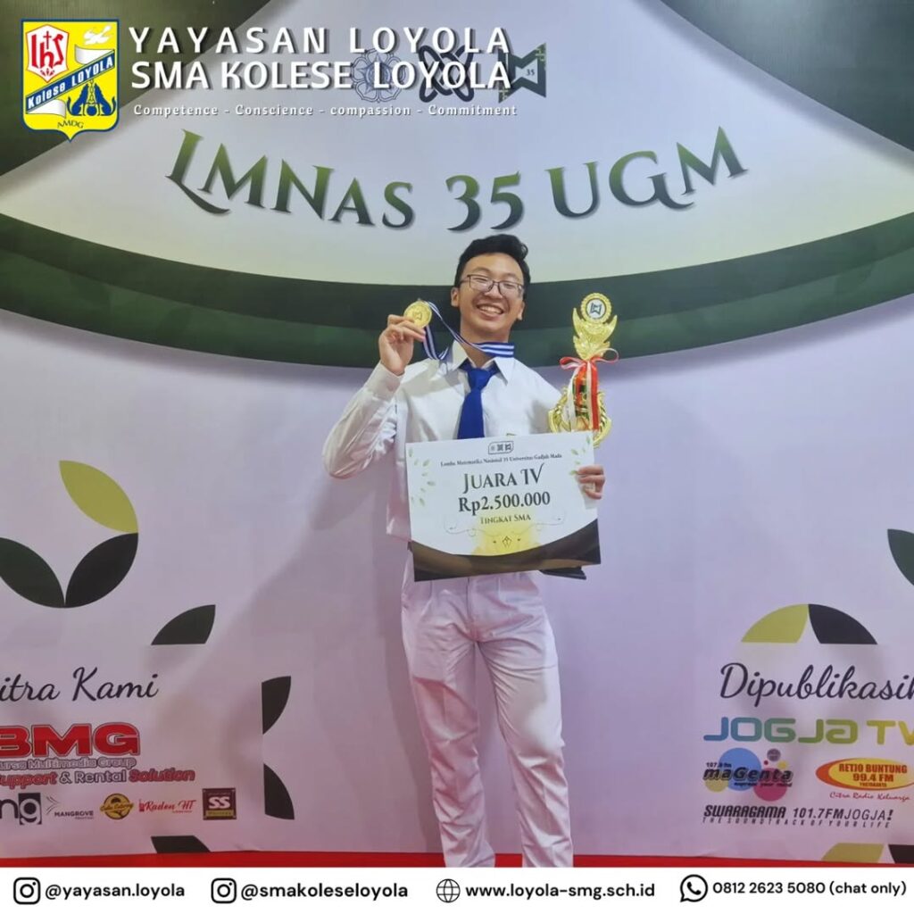 Proficiat bagi Matthew Hutama Pramana ( XI-I/26) berhasil meraih juara 4 dalam Lomba Matematika Nasional (LMNas) yang diselenggarakan Universitas Gajah Mada pada Sabtu-Minggu, 16-17 November 2024. Pendamping: Ibu Monica. …