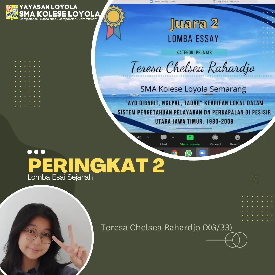 SMA Kolese Loyola berhasil merebut peringkat 2 di bidang esai sejarah kategori pelajar tingkat nasional dalam Pekan Kesejarahan Departemen Sejarah Universitas Diponegoro Semarang @pku_undip bertajuk Kebudayaan Masyarakat Maritim.