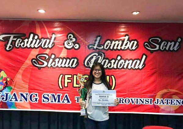 Selamat kepada Angela Natalia H. telah meraih Juara II Lomba Seni Kriya dalam acara Festival Lomba Seni Siswa Nasional (FLS2N) di tingkat Provinsi Jawa Tengah sebagai perwakilan Kota Semarang.