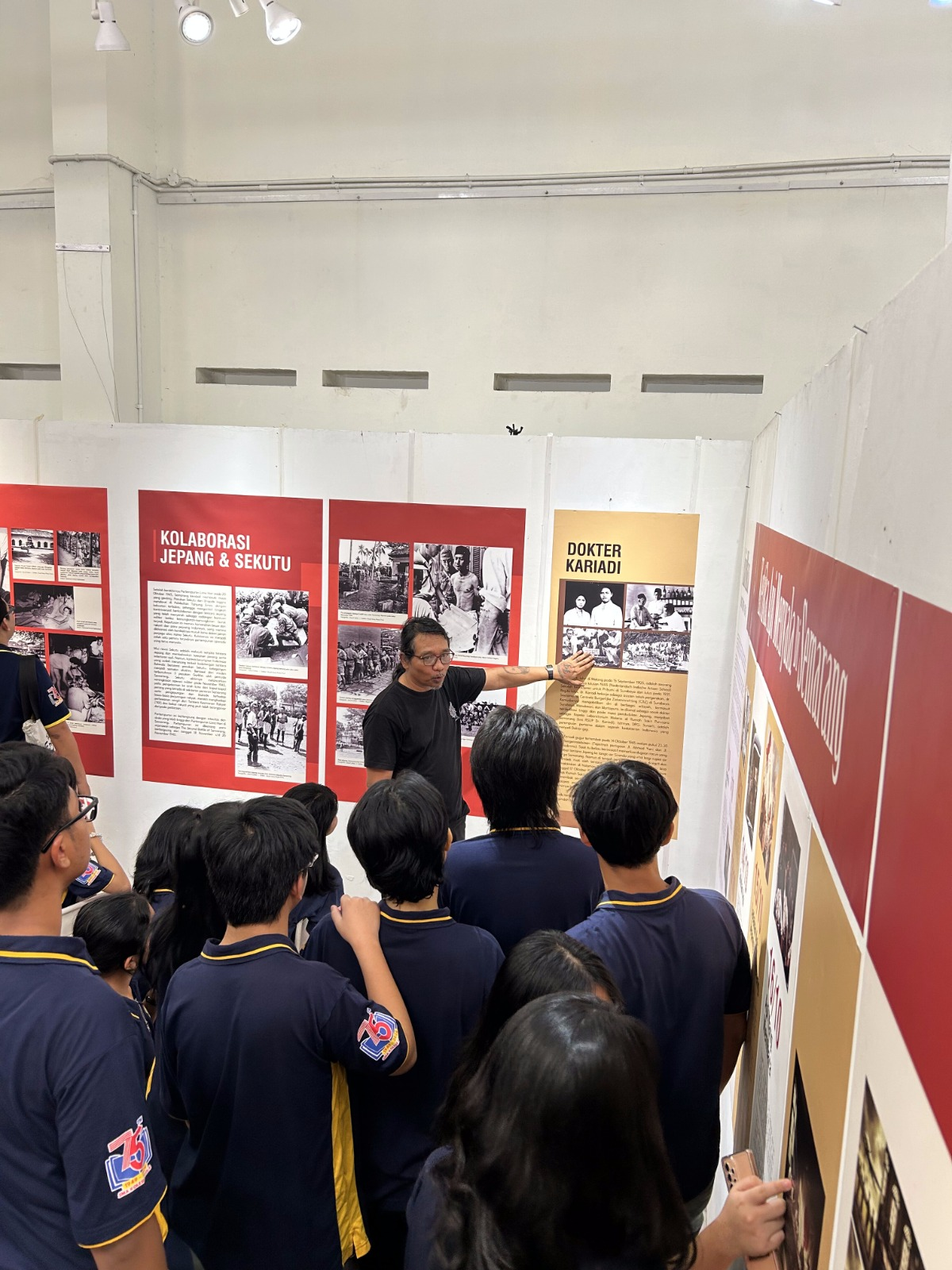 Mata Pelajaran Sejarah Tingkat Lanjut Kelas XI IPS masih konsisten menggelar kegiatan Outing Class sebagai pendalaman dan repetisi materi pembelajaran sejarah. Pada Pameran Peringatan 80 Tahun Pertempuran Lima Hari Semarang dengan tajuk “Ketika Api Menyala di Semarang” di Rumah PoHan Kota Lama Semarang Jalan Kepodang No. 64 pada Kamis-Jumat, 9-10 Oktober 2025. Para murid diajak mendalami media pembelajaran sejarah yang inovatif, serta menambah khasanah pengetahuan serta memberi makna pada nilai-nilai humanis di balik perang Pertempuran Lima Hari Semarang. Pertempuran yang terjadi setelah Perang Dunia II berakhir ini ternyata menyimpan banyak narasi yang belum banyak diketahui publik seperti pecahnya pertempuran besar tidak hanya terjadi pada 15-20 Oktober 1945, kamp-kamp interniran (tahanan perang) di seputaran Kota Semarang, serta resolusi gencatan senjata yang berjalan tidak mudah. Rombongan murid secara perlahan-lahan dituntun menyimak penjelasan dan pemaparan narasi dari beragam arsip foto, video, replika busana, artefak senjata, gambar sketsa, laporan resmi militer, dan surat kabar di bawah panduan kurator pameran Kesit Widjanarko, serta didampingi guru sejarah Joseph Army Sadhyoko.