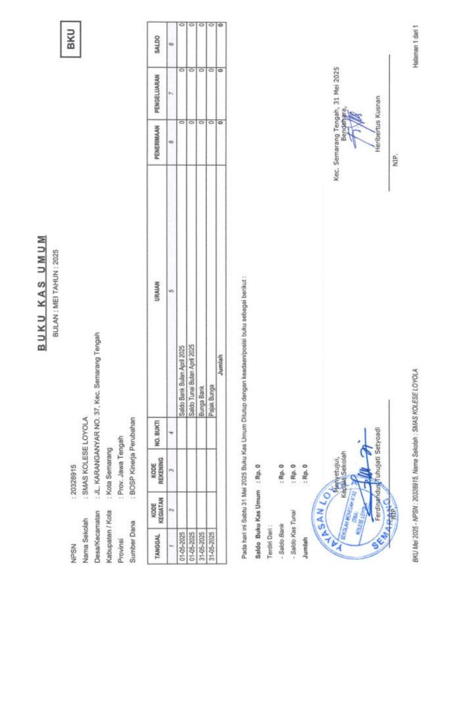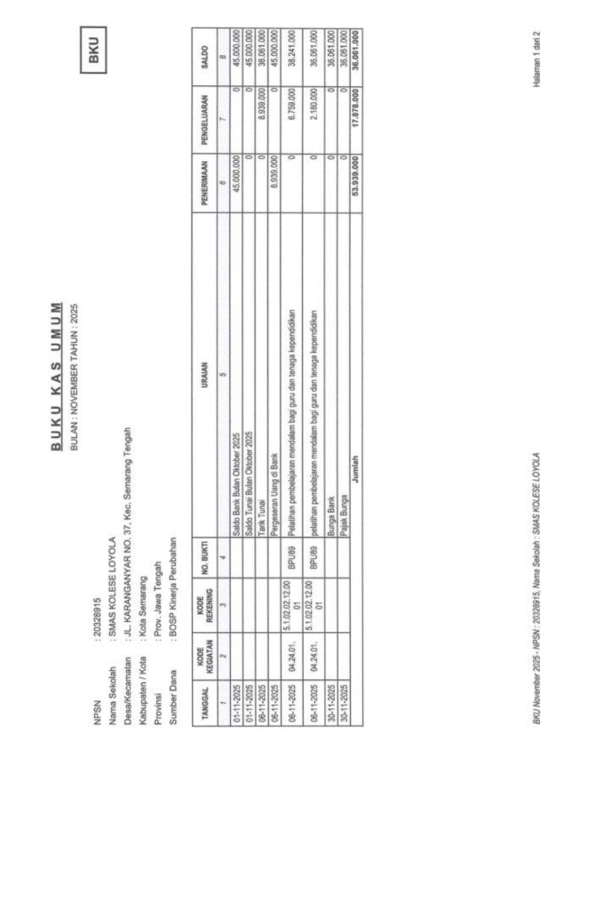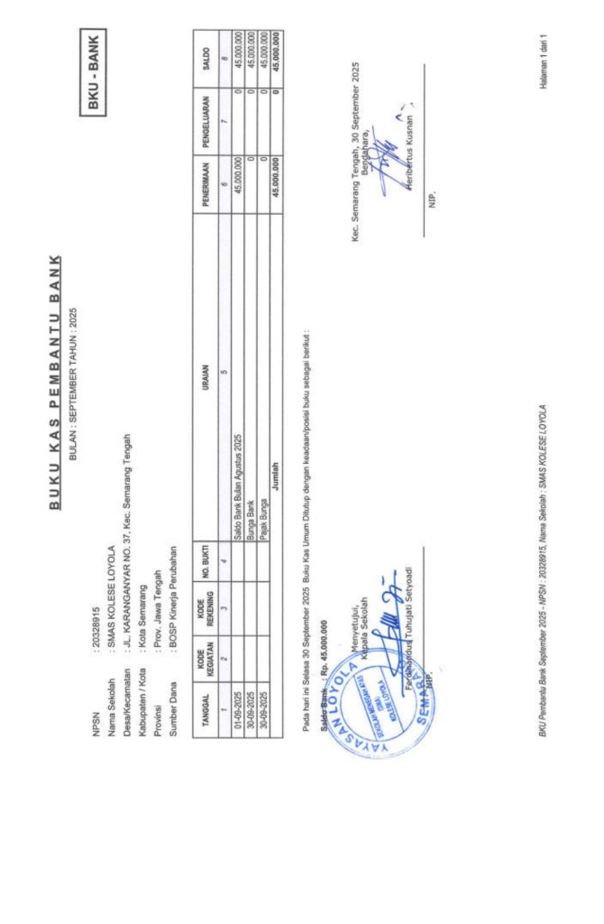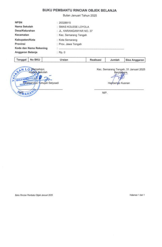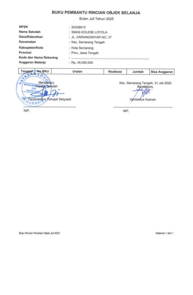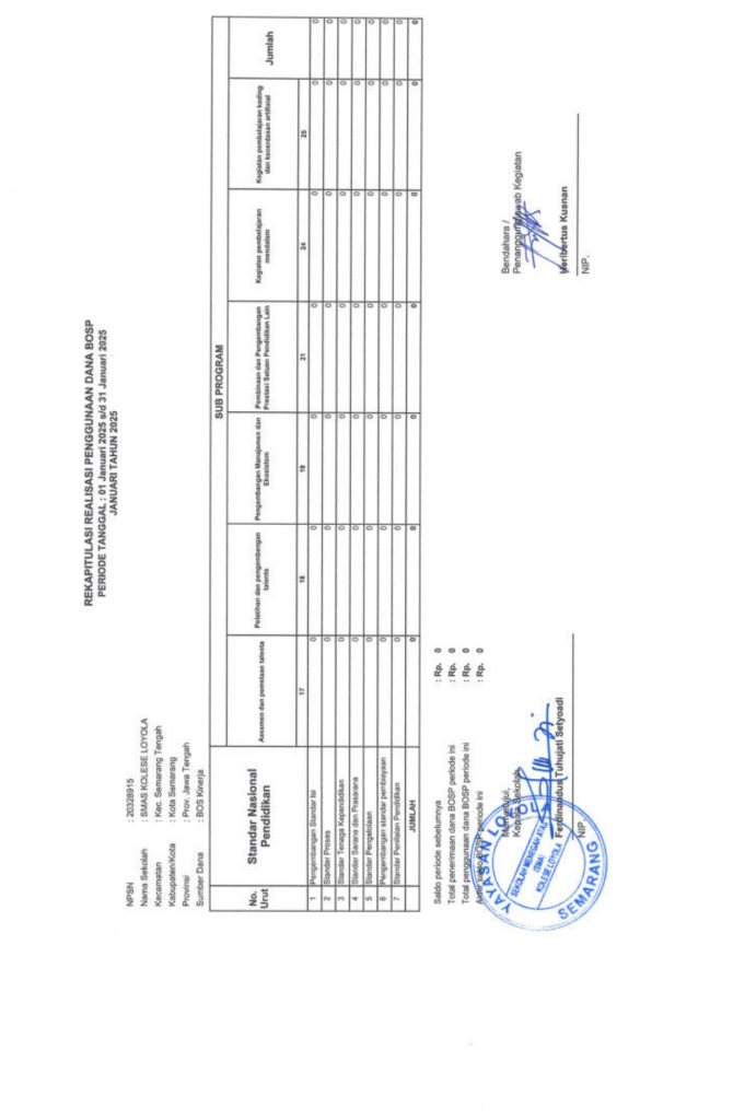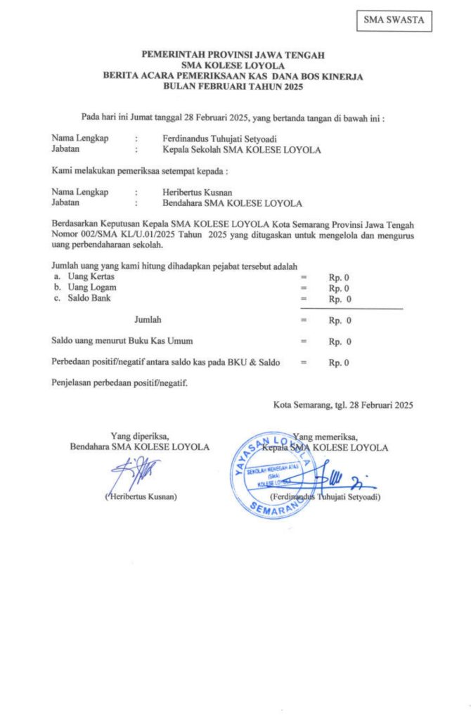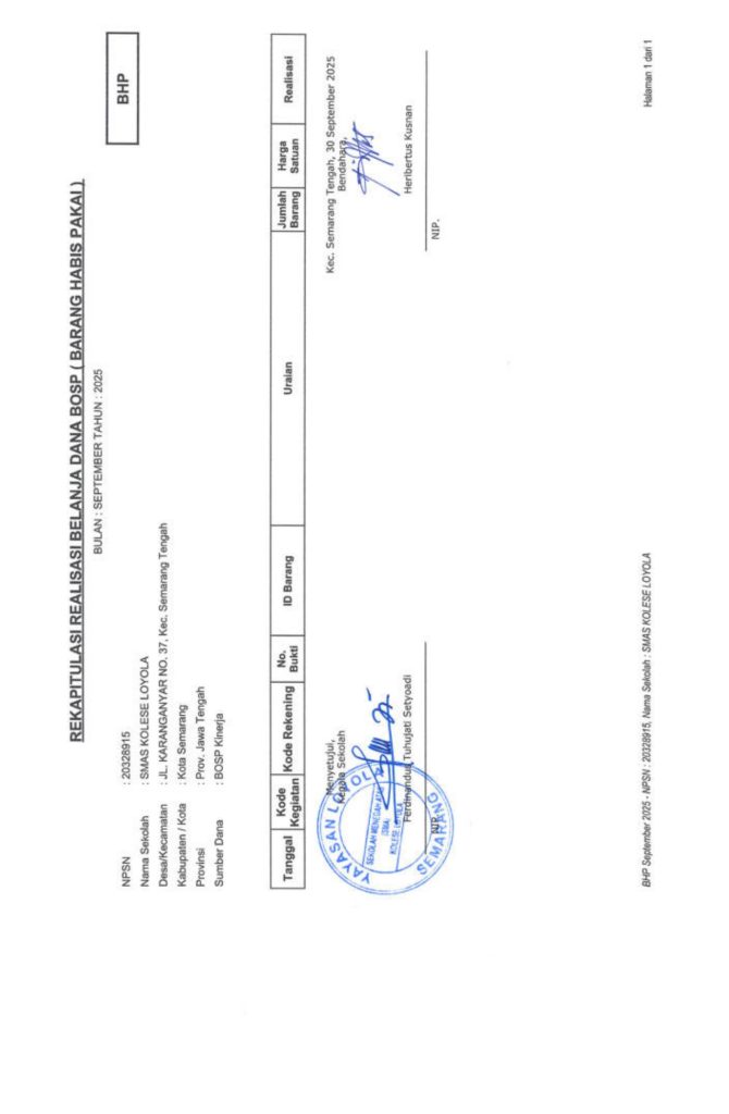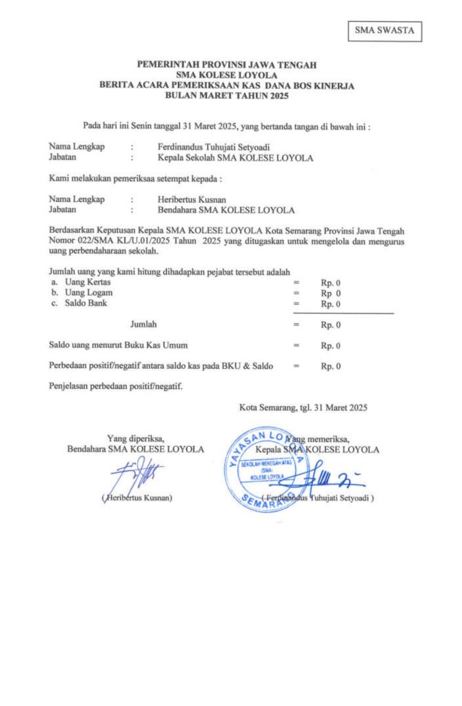 Laporan Pertanggungjawaban Dana Bantuan Operasional Sekolah Kinerja Sekolah Menengah Atas Tahun 2025 – SMA Kolese Loyola