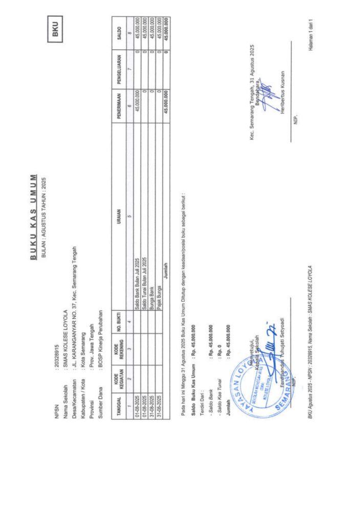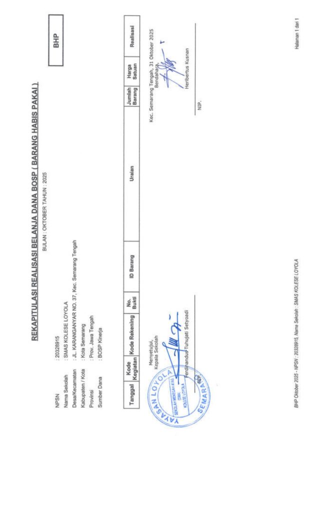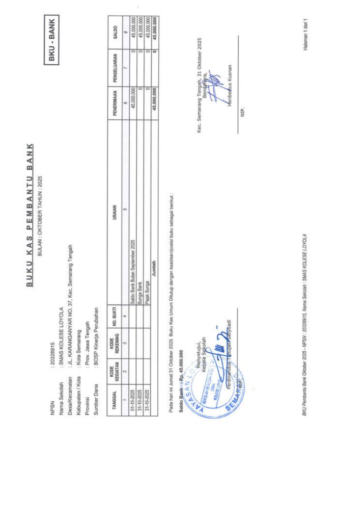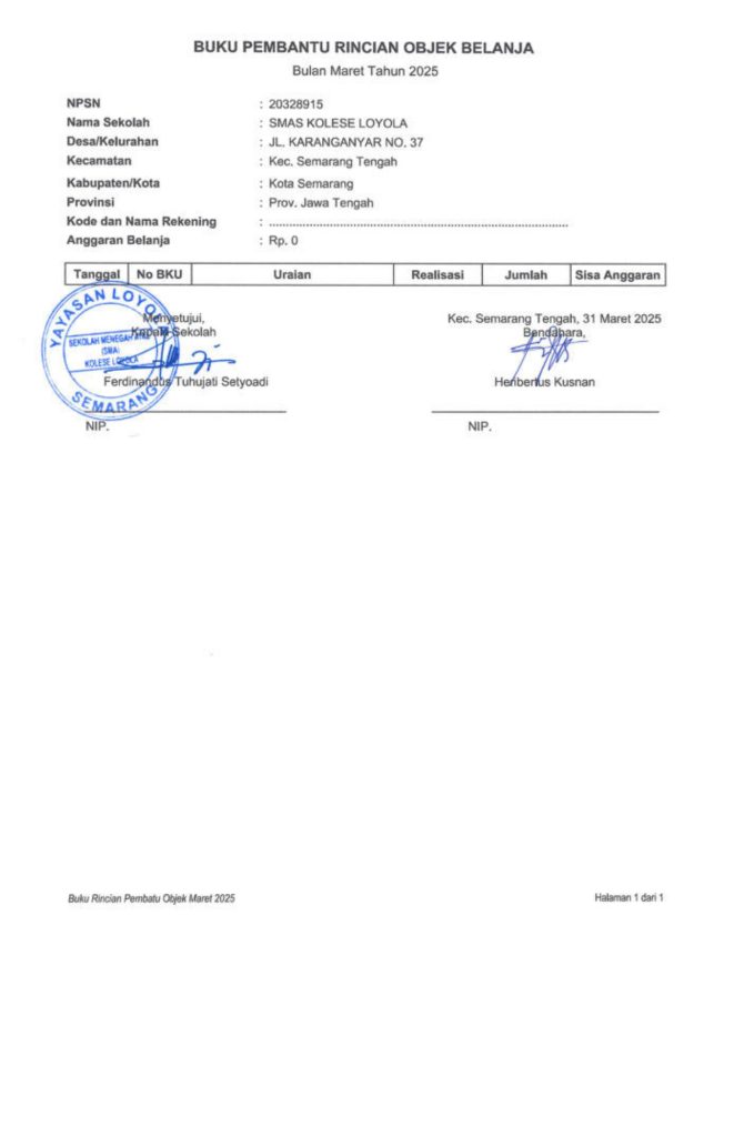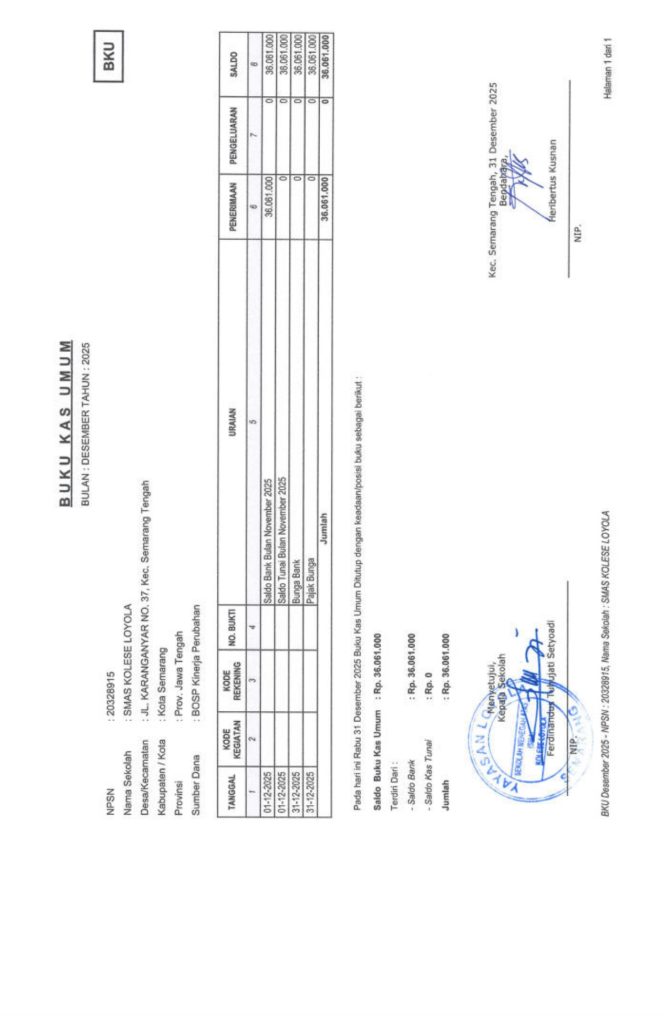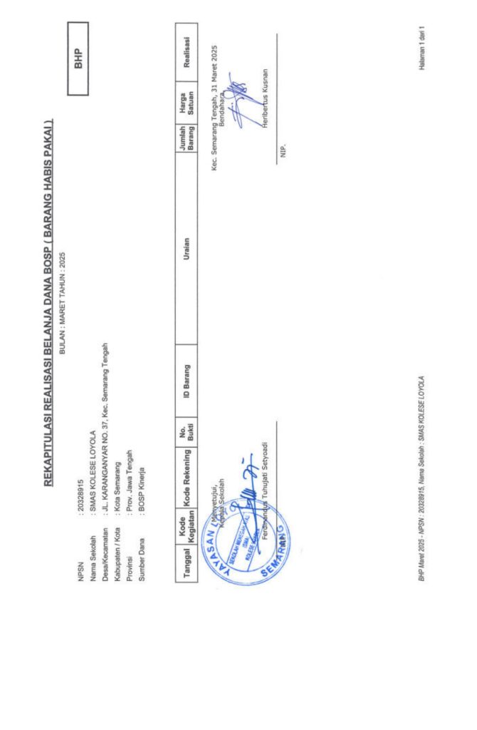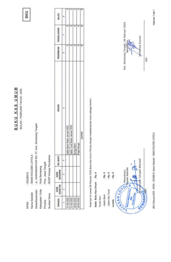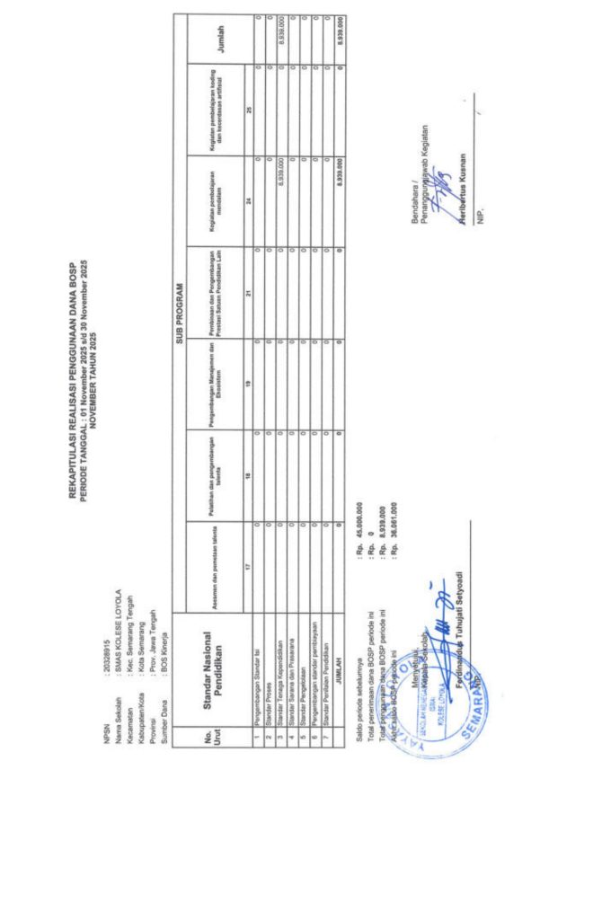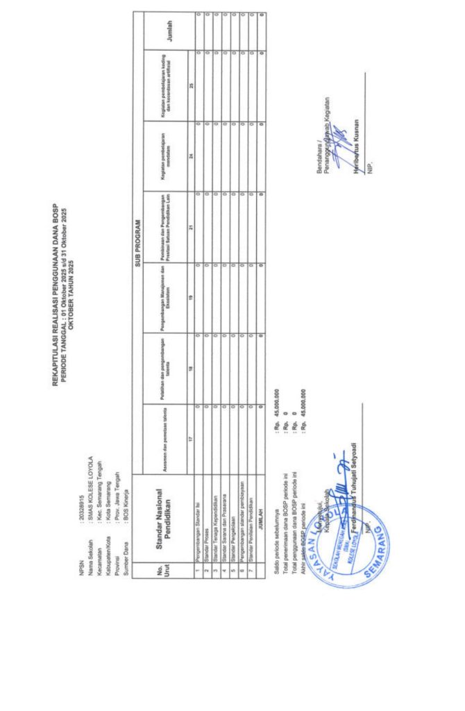 Laporan Pertanggungjawaban Dana Bantuan Operasional Sekolah Kinerja Sekolah Menengah Atas Tahun 2025 – SMA Kolese Loyola