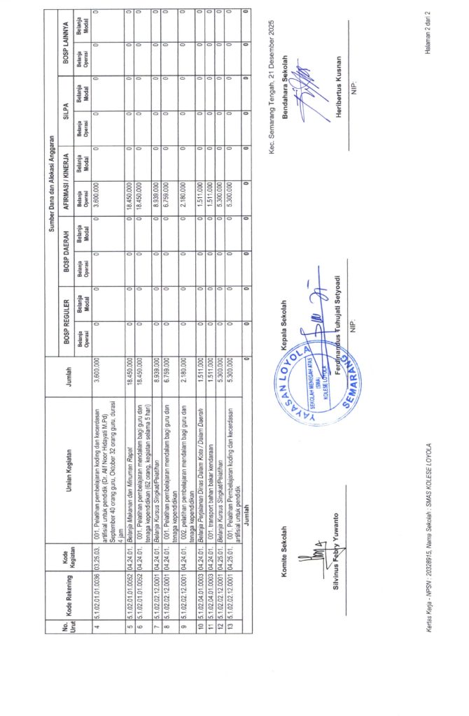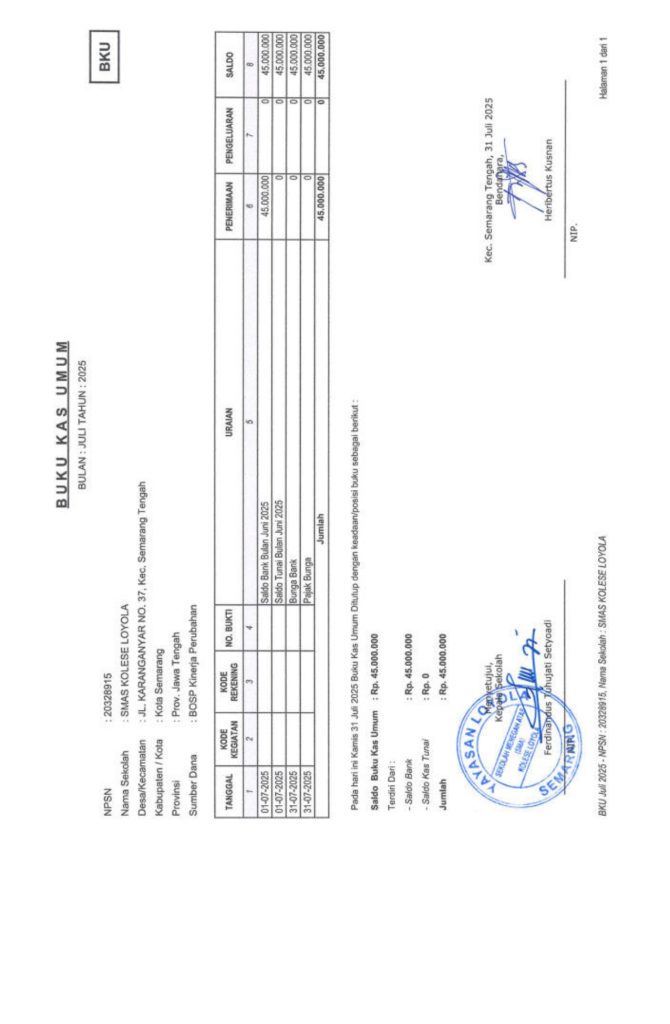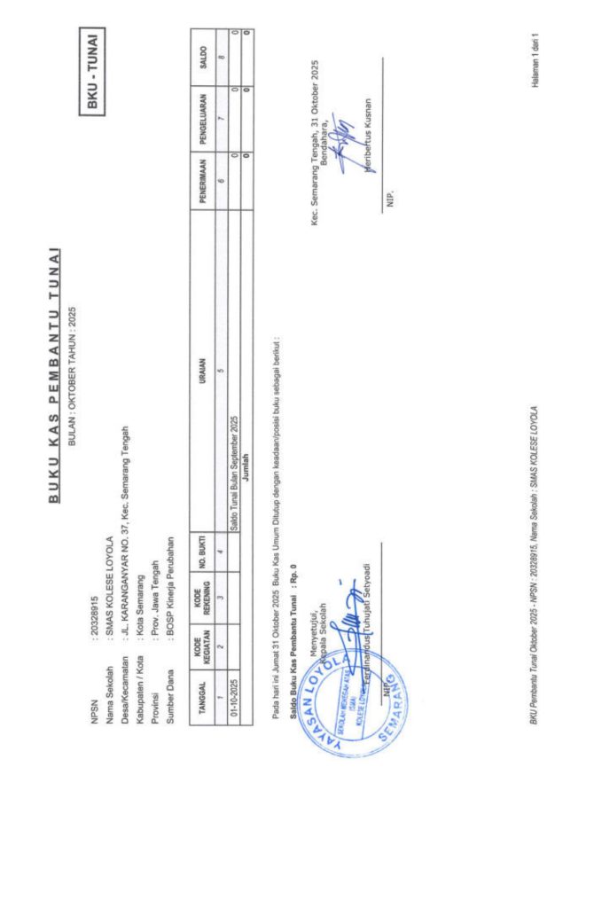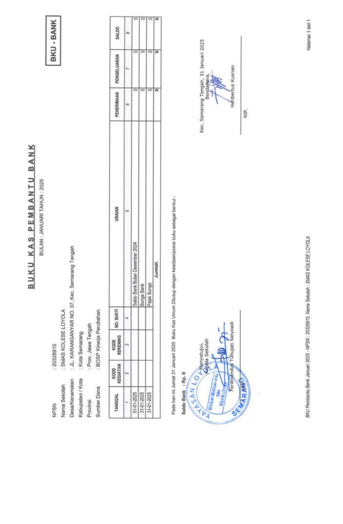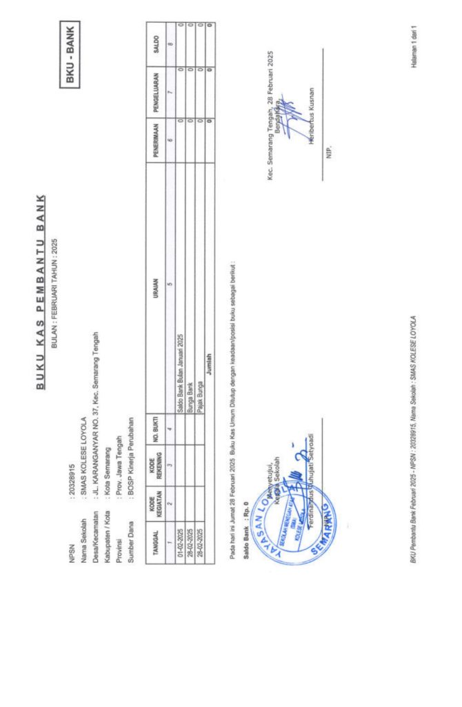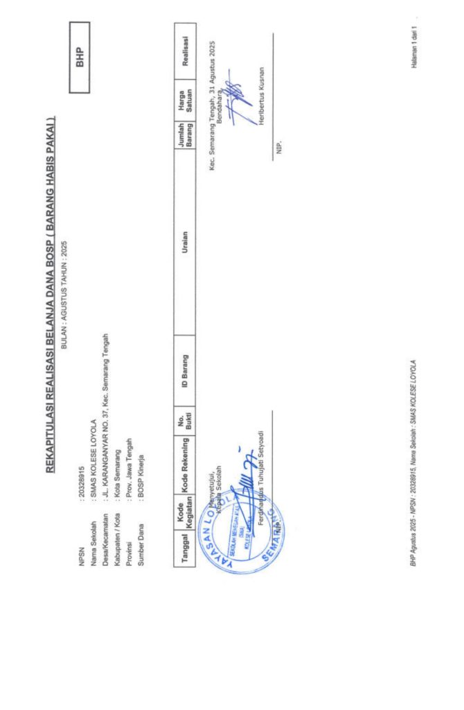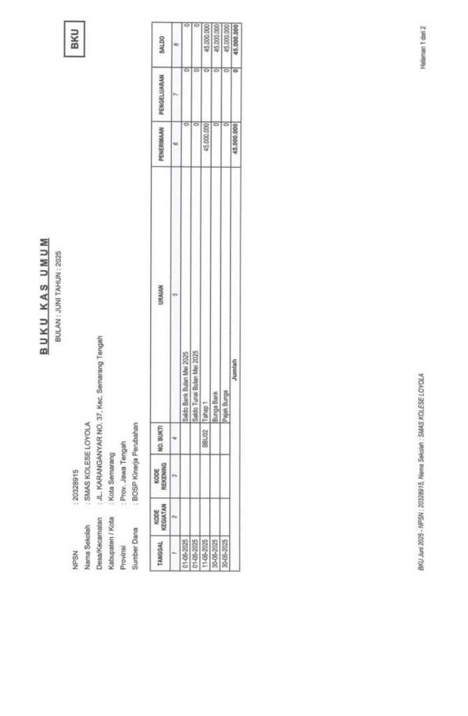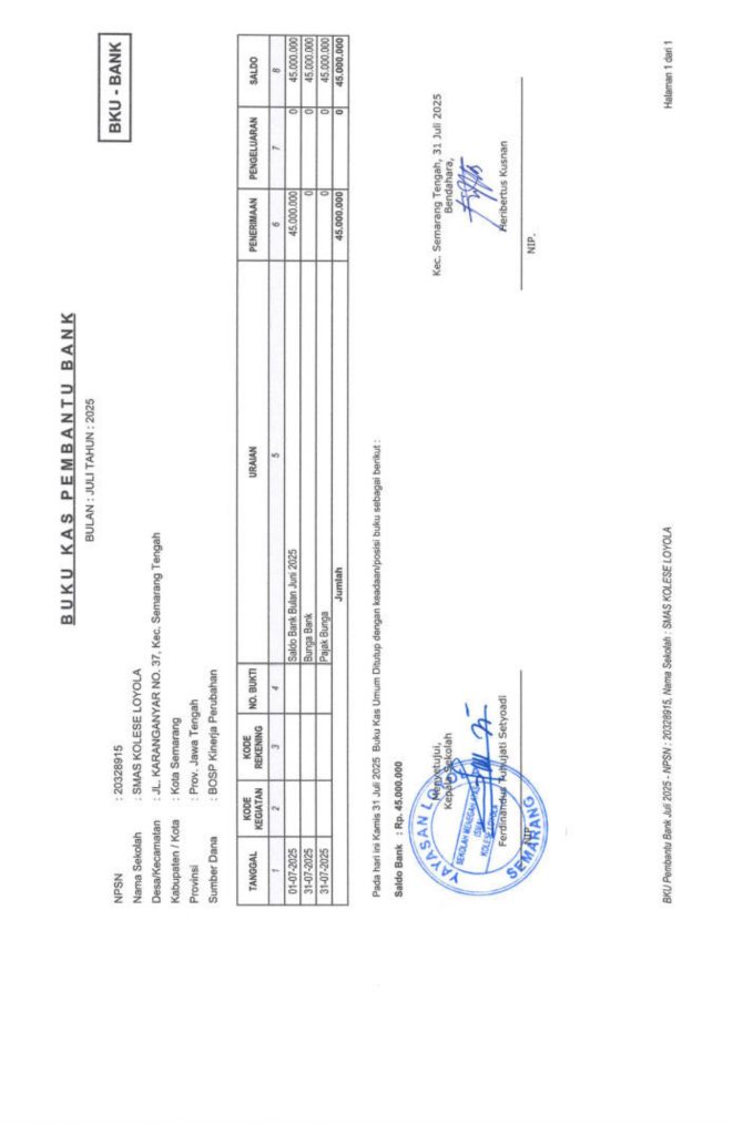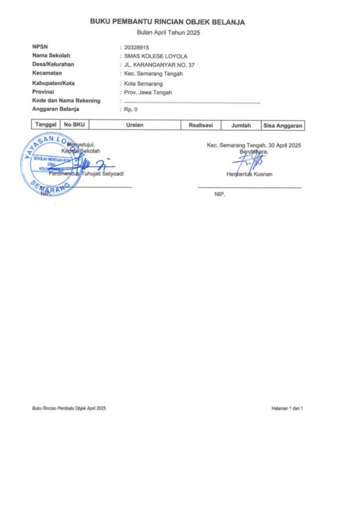 Laporan Pertanggungjawaban Dana Bantuan Operasional Sekolah Kinerja Sekolah Menengah Atas Tahun 2025 – SMA Kolese Loyola