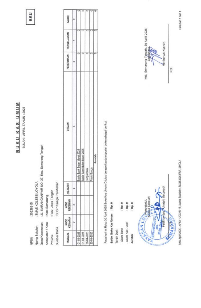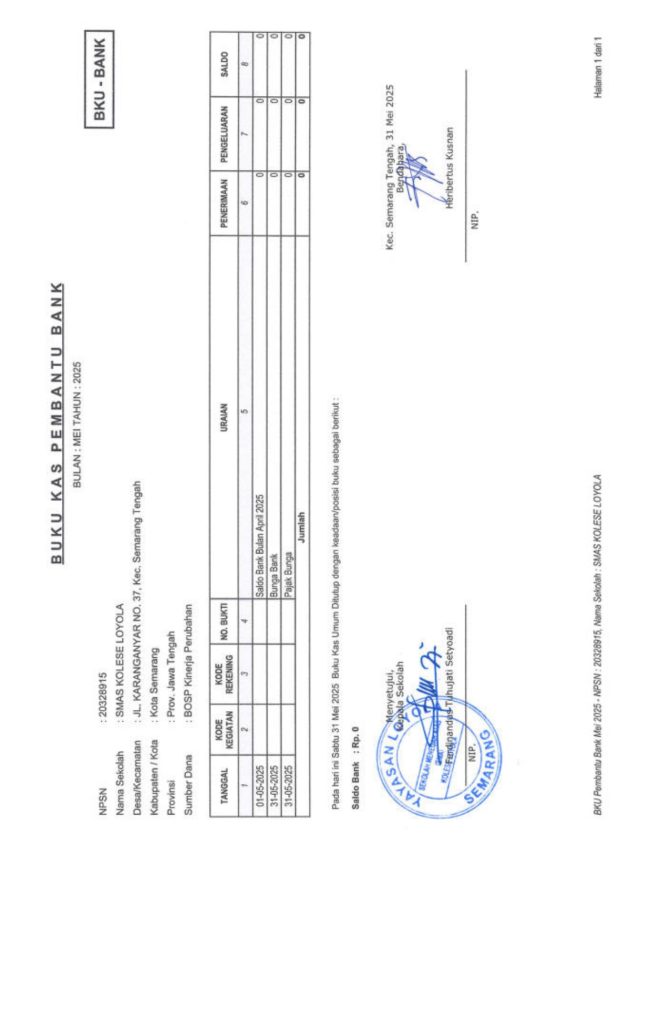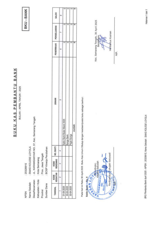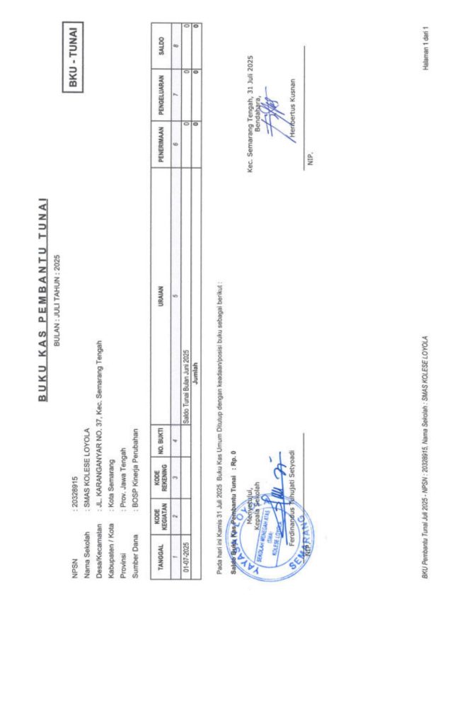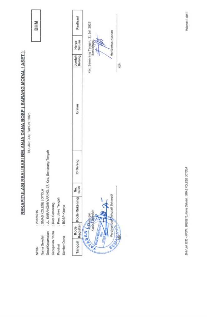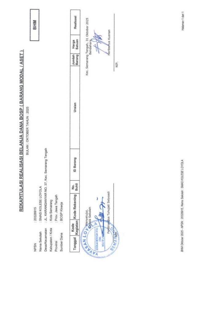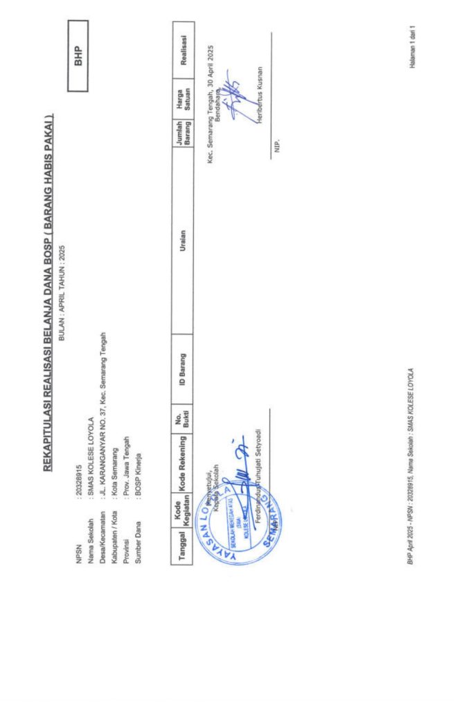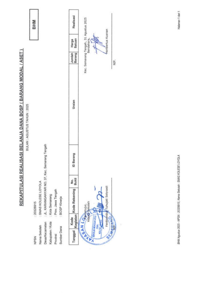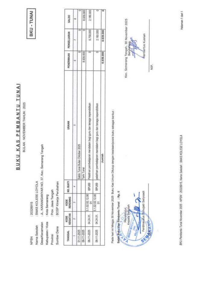 Laporan Pertanggungjawaban Dana Bantuan Operasional Sekolah Kinerja Sekolah Menengah Atas Tahun 2025 – SMA Kolese Loyola