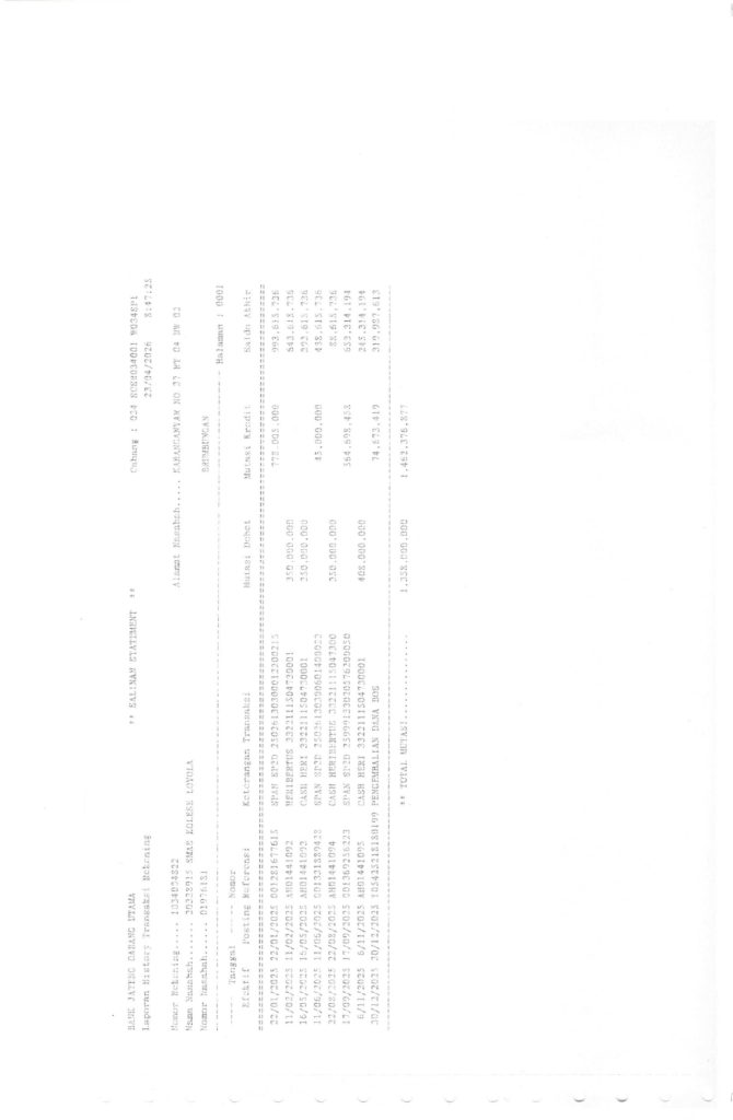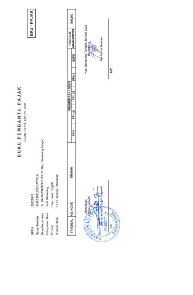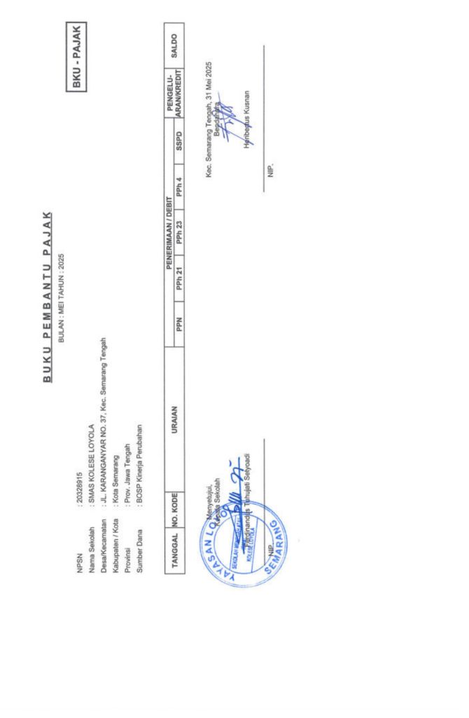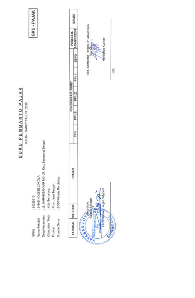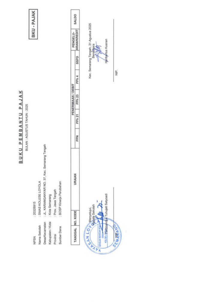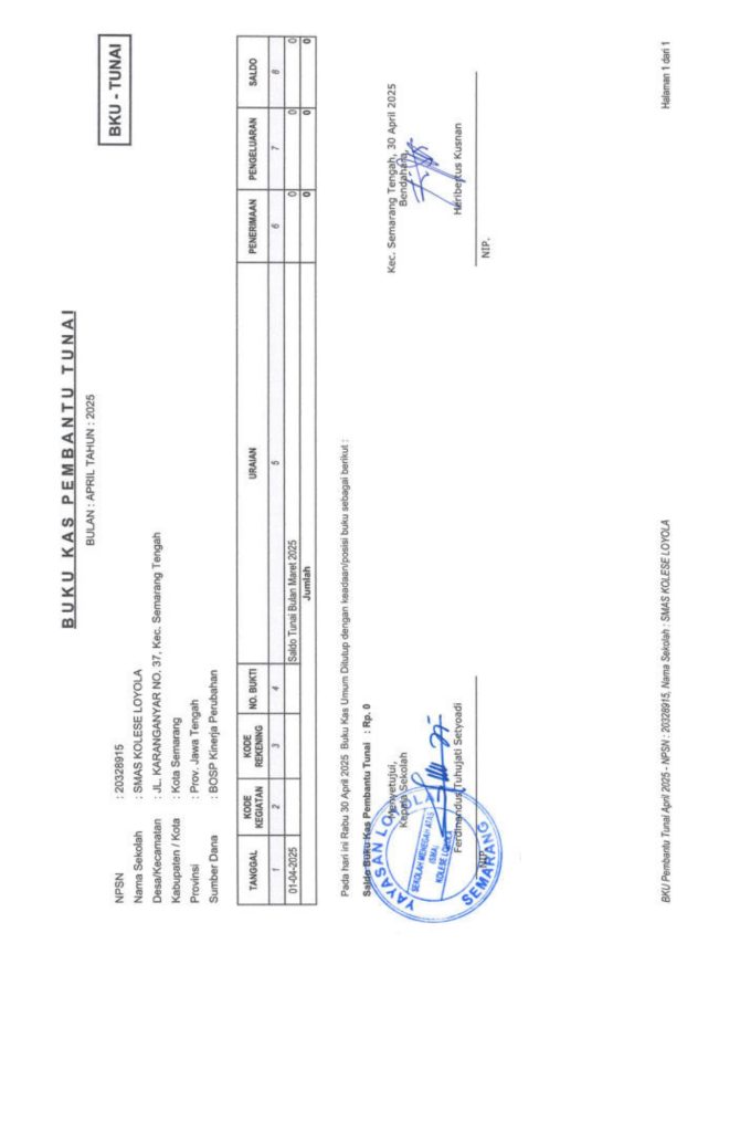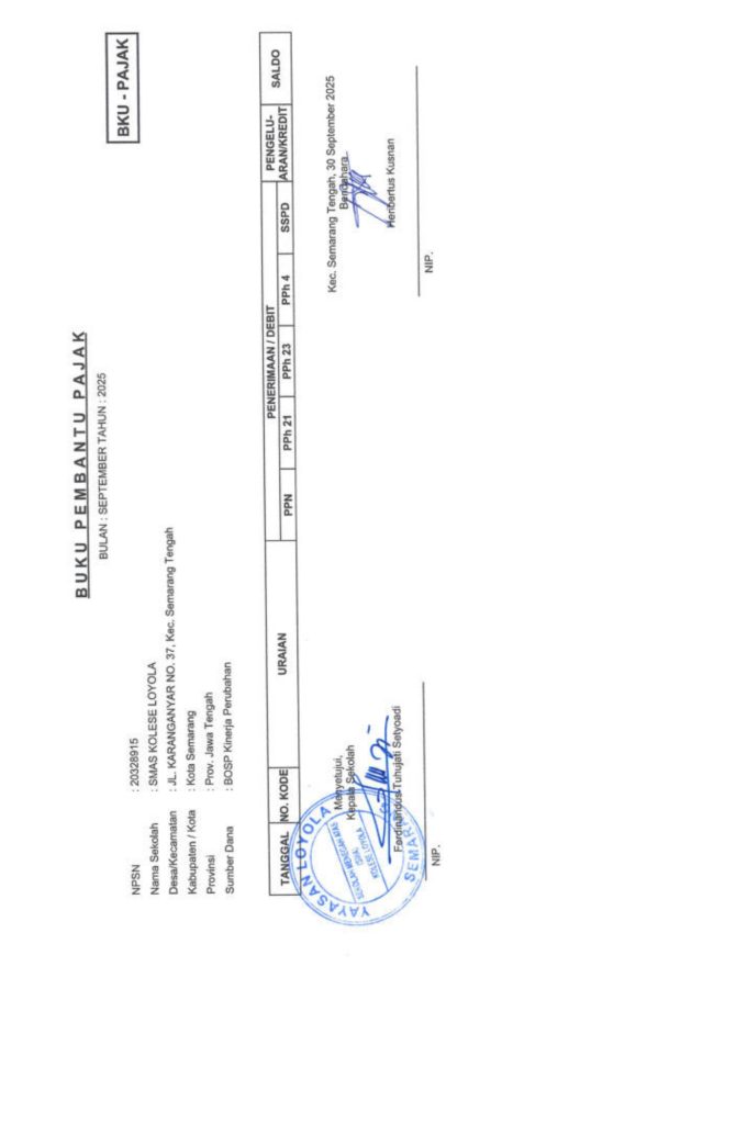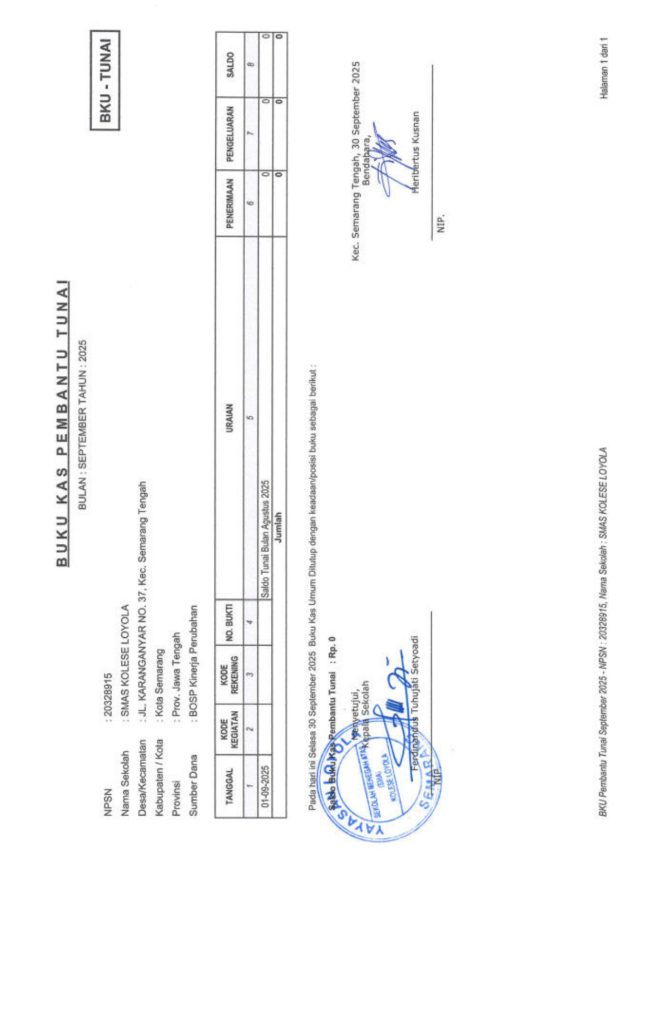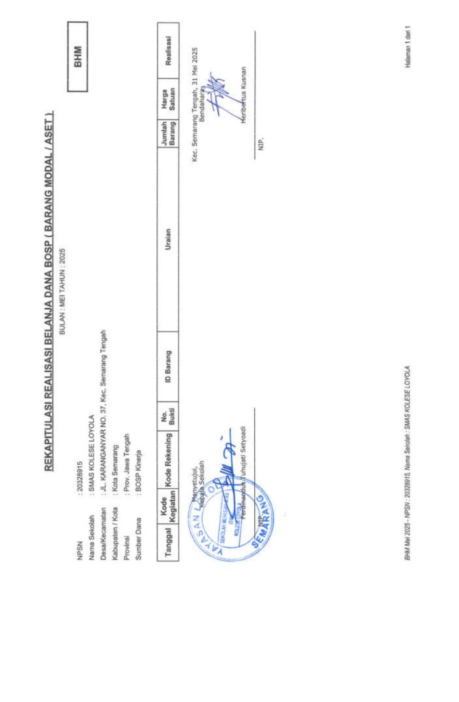 Laporan Pertanggungjawaban Dana Bantuan Operasional Sekolah Kinerja Sekolah Menengah Atas Tahun 2025 – SMA Kolese Loyola