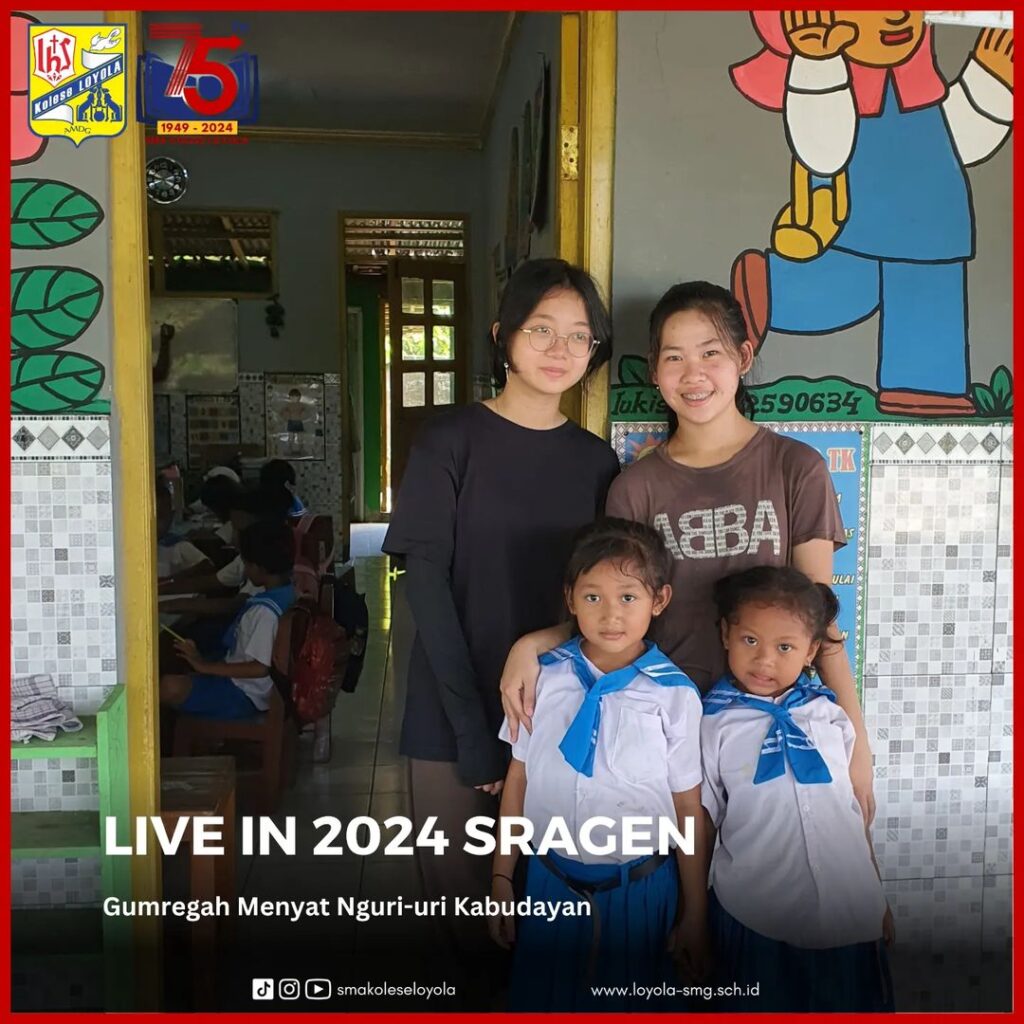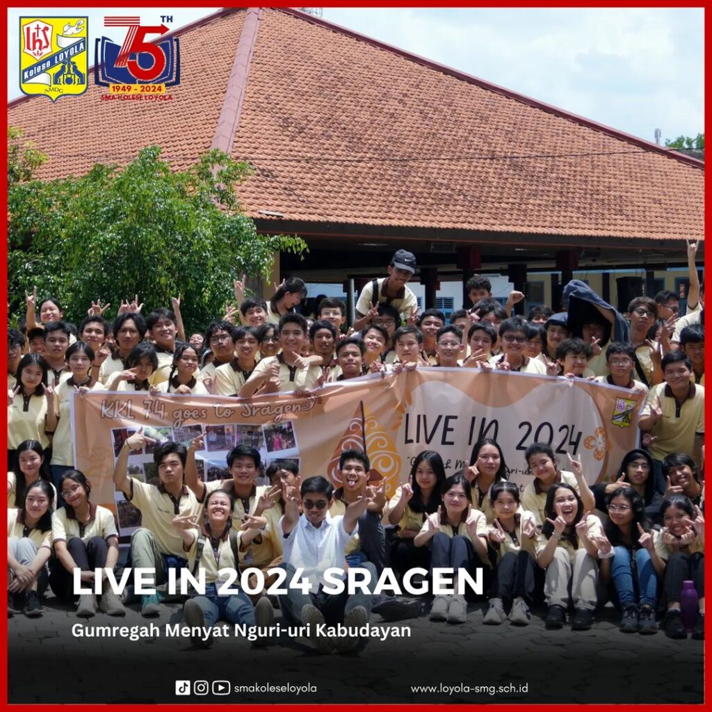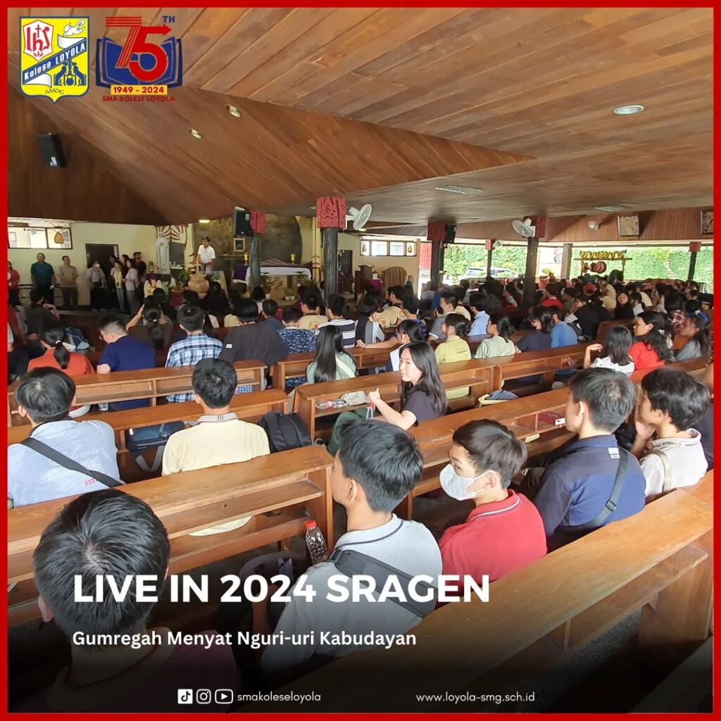 LIVE IN 2024 kali ini diselenggarakan di Kabupaten Sragen, Jawa Tengah. Dengan mengusung tema Gumregah Menyat Nguri-uri Kabudayan, para siswa kelas 10 diajak untuk belajar hidup di daerah pedesaan, memahami keberagaman kearifan lokal, dan berbagi berkat bagi sekitar sebagai bagian dari penerapan projek penguatan profil pelajar Pancasila. Selain itu, para siswa diharapkan mampu menumbuhkan hal positif untuk pengembangan diri demi sesama dan orang lain. (4-8/03/2024)