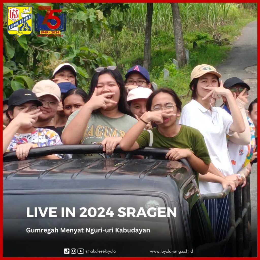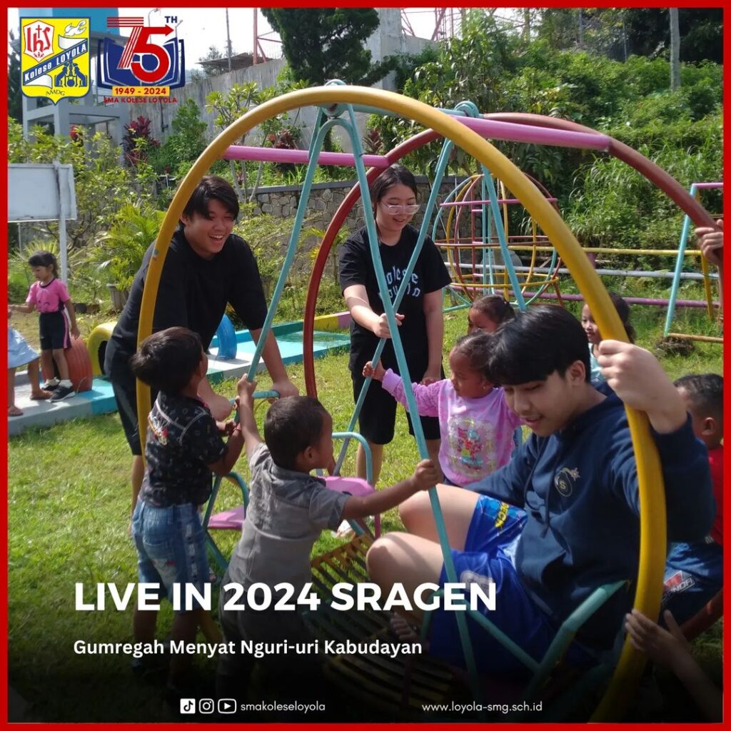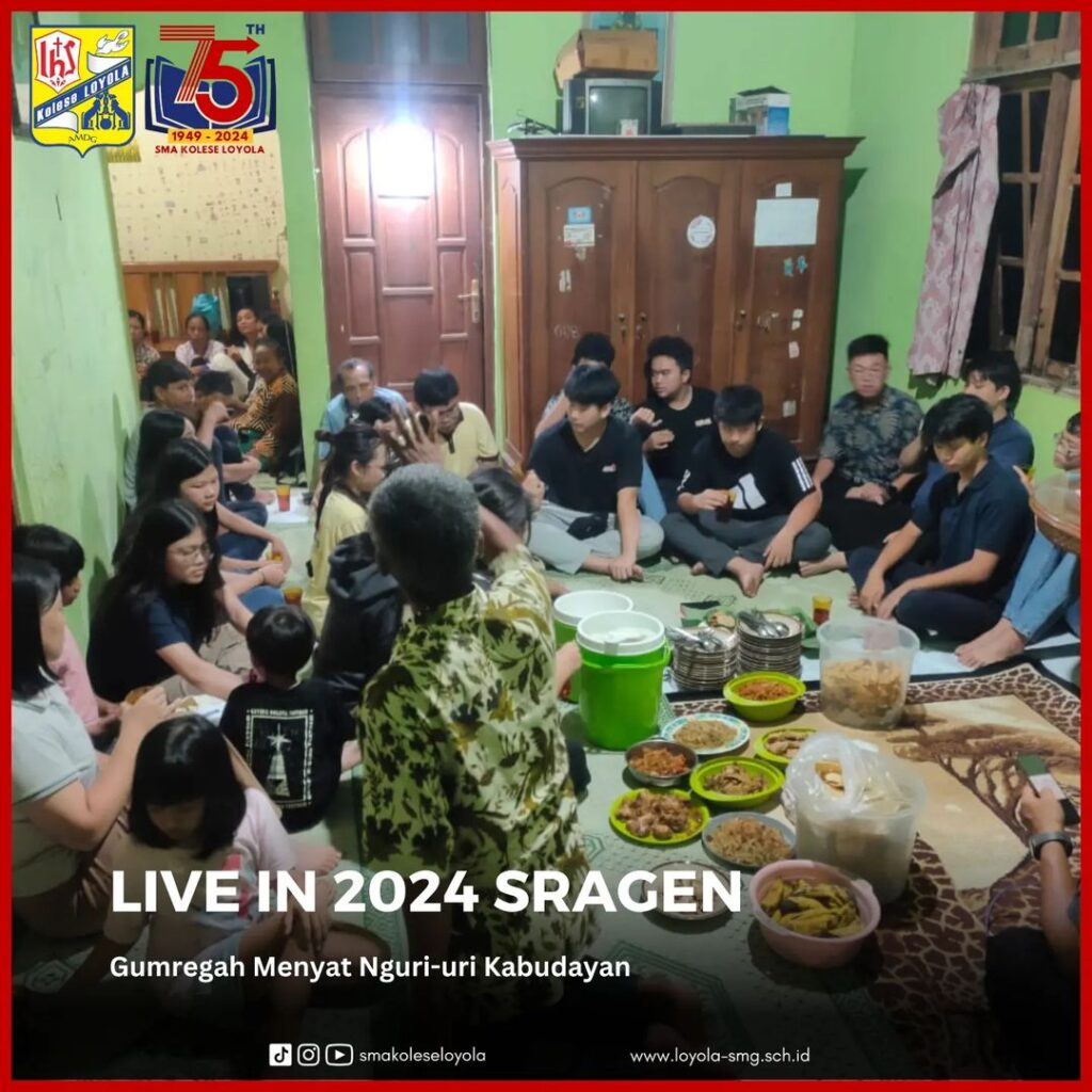LIVE IN 2024 kali ini diselenggarakan di Kabupaten Sragen, Jawa Tengah. Dengan mengusung tema Gumregah Menyat Nguri-uri Kabudayan, para siswa kelas 10 diajak untuk belajar hidup di daerah pedesaan, memahami keberagaman kearifan lokal, dan berbagi berkat bagi sekitar sebagai bagian dari penerapan projek penguatan profil pelajar Pancasila. Selain itu, para siswa diharapkan mampu menumbuhkan hal positif untuk pengembangan diri demi sesama dan orang lain. (4-8/03/2024)