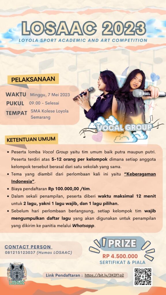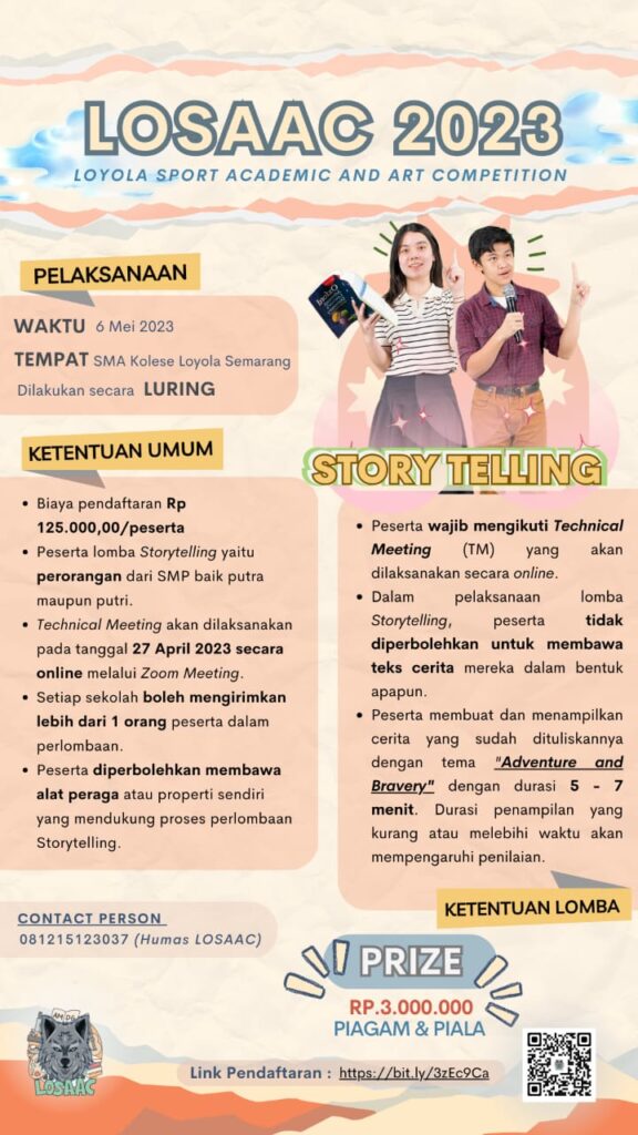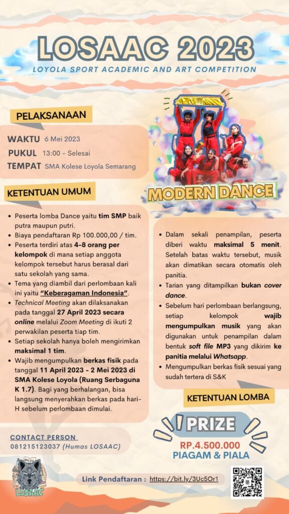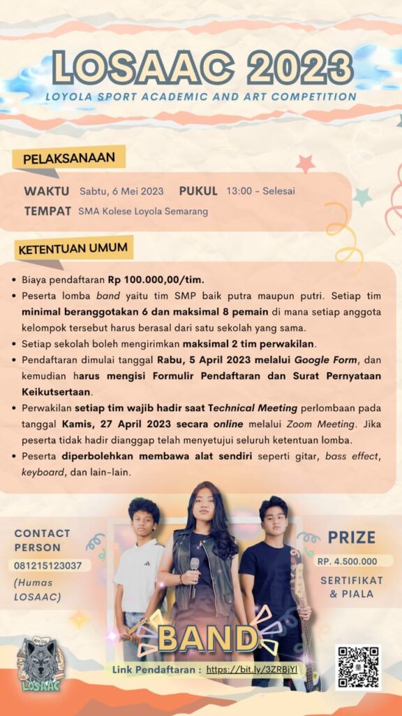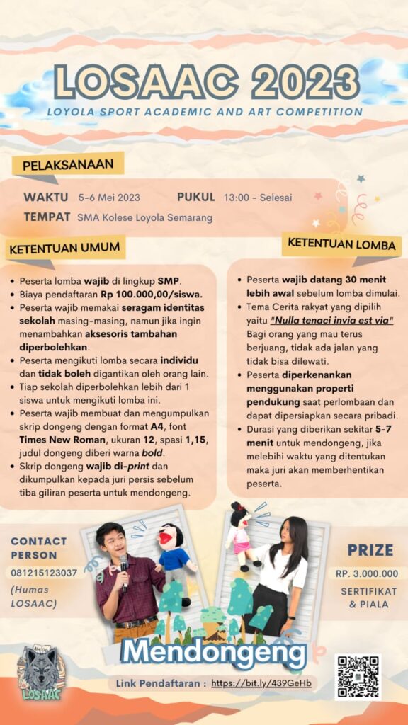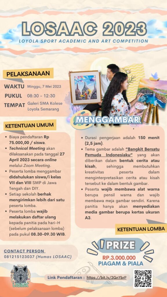 SMA Kolese Loyola Semarang akan menyelenggarakan Kompetisi Olahraga, Seni, dan Akademik se-JATENG dan DIY untuk tingkat SMP/Sederajat se-Jateng dan DIY dengan ๐ง๐ข๐ง๐๐ ๐๐๐๐๐๐ ๐ฆ๐๐๐๐ฆ๐๐ฅ ๐ฑ๐ฒ ๐๐๐๐ฎ