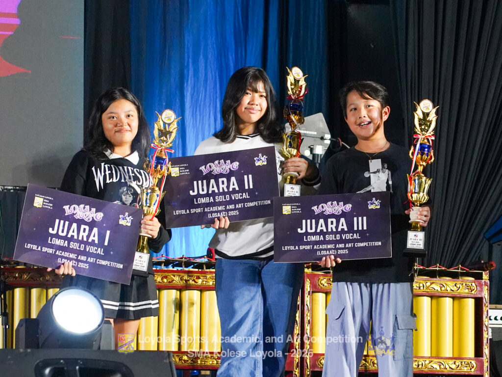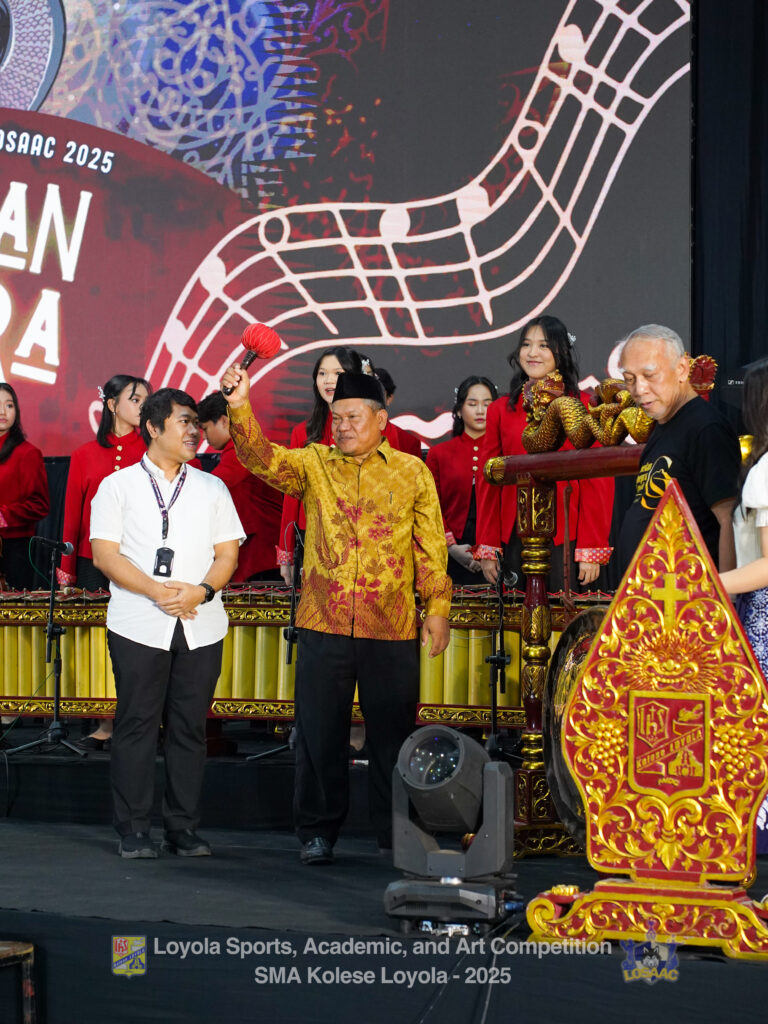 Hidup, seperti yang telah kita ketahui, bukan hanya kerutan yang tak berujung dan kekusutan yang tak berarti. Terkadang, kita menemukan alasan untuk merayakan, dan tentu saja, kita cukup dibenarkan dalam kebahagiaan kita hari ini. Menyelesaikan rangkaian acara yang membentuk LOSAAC 2025, kami, di akhir minggu, menghadiri acara penutupan LOSAAC yang diadakan di Aula Bellarminus. Saat waktu tepat pukul 16.15 WIB, teelihat para tamu undangan sudah mulai mengisi kursi-kursi yang tersusun rapi. Acara spesial ini dibuka oleh beberapa MC yaitu Fyo, Adrian, Niel, dan Asia yang mengenakan pakaian tradisional Batak. Setelah itu, acara dilanjutkan dengan doa pembuka, lagu Indonesia Raya serta sambutan dari berbagai pihak. Terdapat pula prosesi pembukaan menggunakan gong oleh perwakilan Kepala Dinas Pendidikan Provinsi Jawa Tengah.