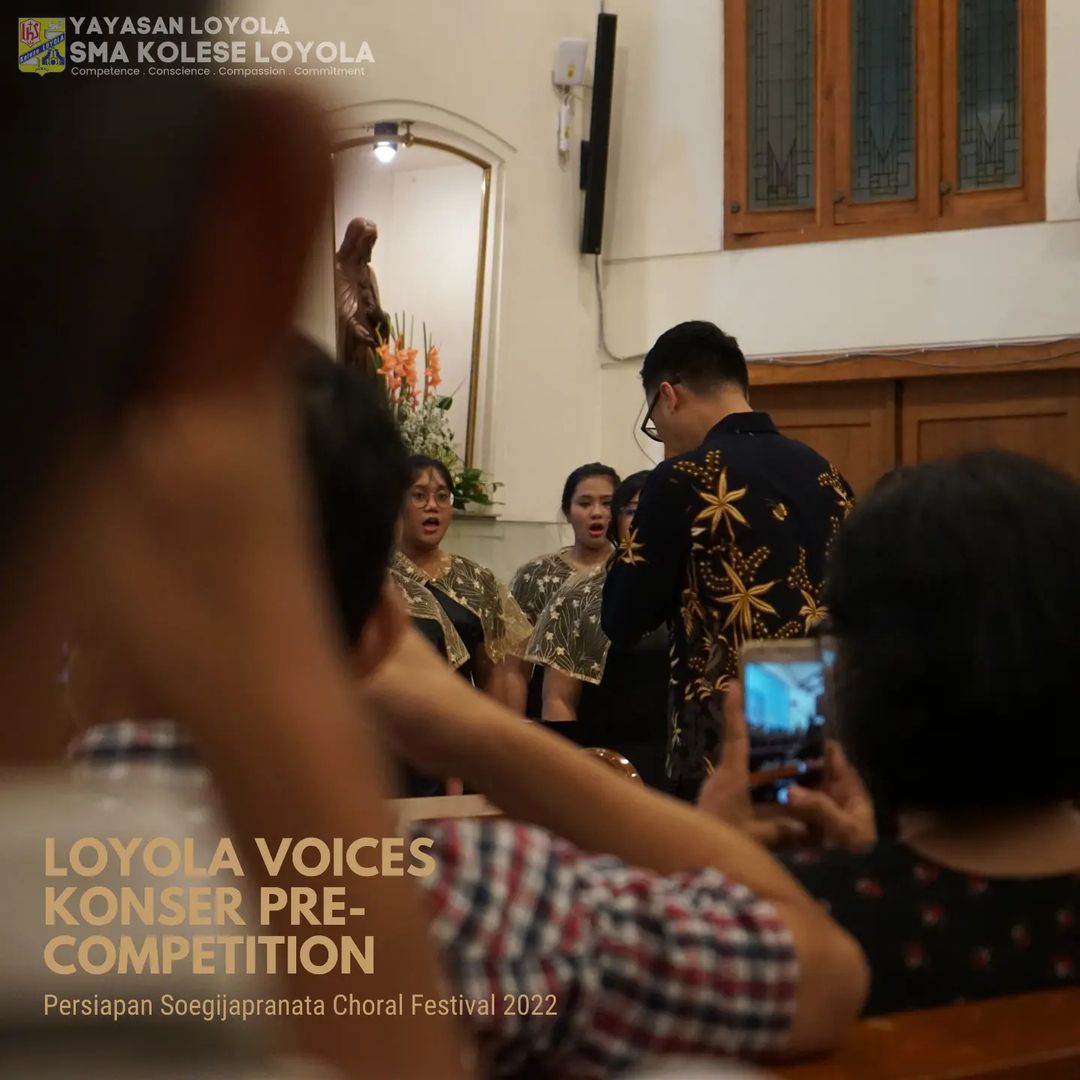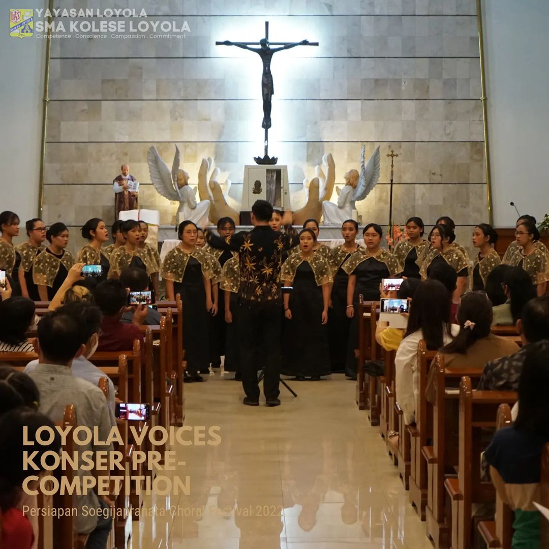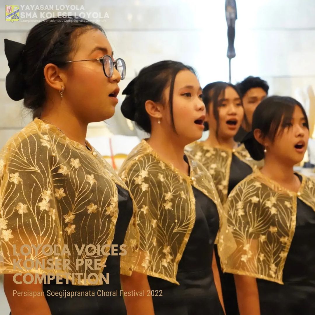 Organisasi Hobi bidang paduan suara SMA Kolese Loyola, Loyola Voices (LV) @loyolavoices baru-baru ini menggelar Konser Pre-Kompetisi sebagai ajang persiapan dalam Soegijapranata Choral Festival 2022 pada 9-11 September mendatang. Pada konser ini, LV tampil dalam dua kategori, yaitu Female Choir dan Mixed Choir.