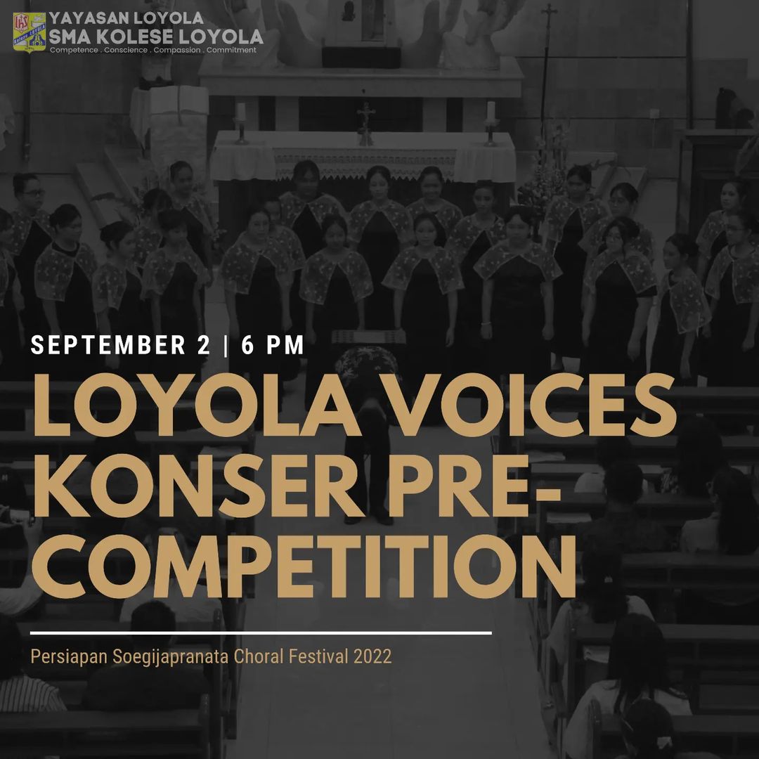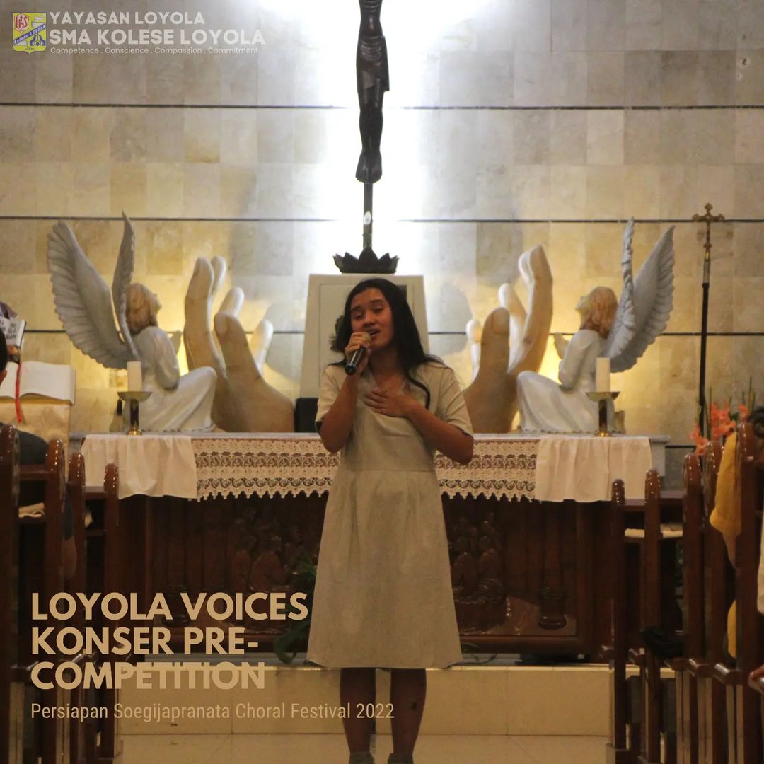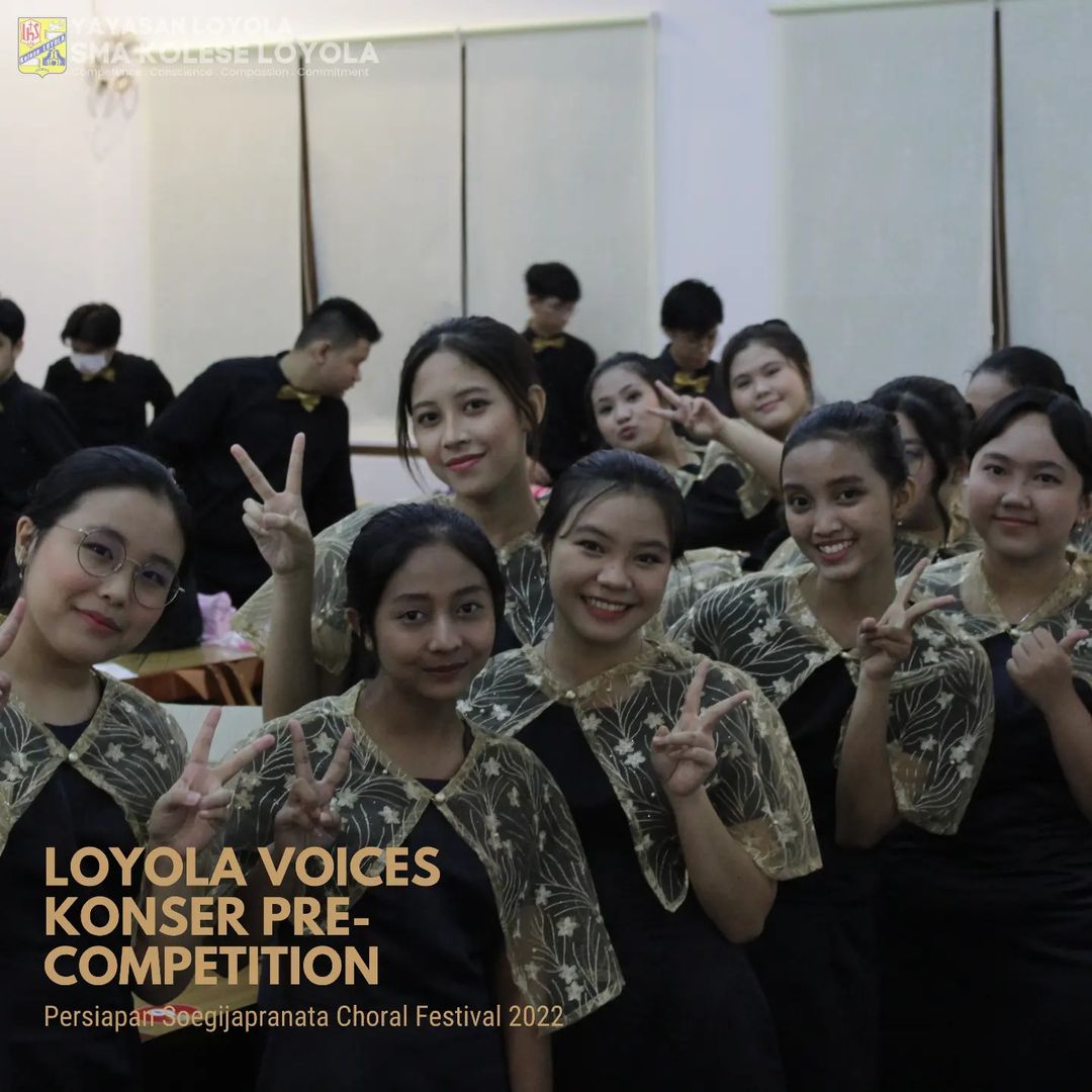 Organisasi Hobi bidang paduan suara SMA Kolese Loyola, Loyola Voices (LV) @loyolavoices baru-baru ini menggelar Konser Pre-Kompetisi sebagai ajang persiapan dalam Soegijapranata Choral Festival 2022 pada 9-11 September mendatang. Pada konser ini, LV tampil dalam dua kategori, yaitu Female Choir dan Mixed Choir.