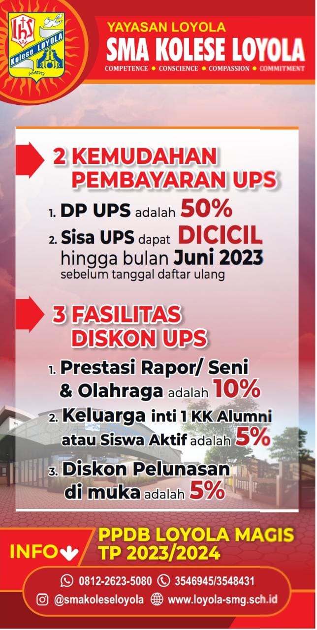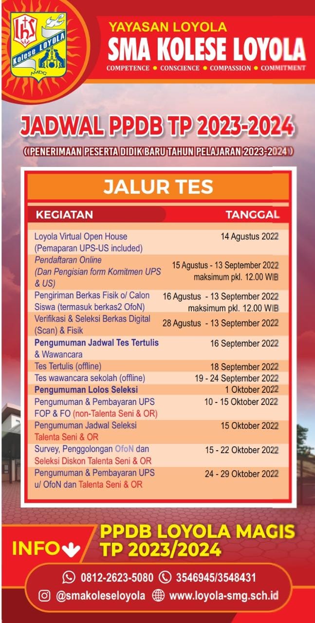 - Pengiriman berkas fisik pendaftaran harus sudah sampai di SMA Kolese Loyola maksimal tanggal 24 Agustus 2022 pukul 12.00 WIB (siang)