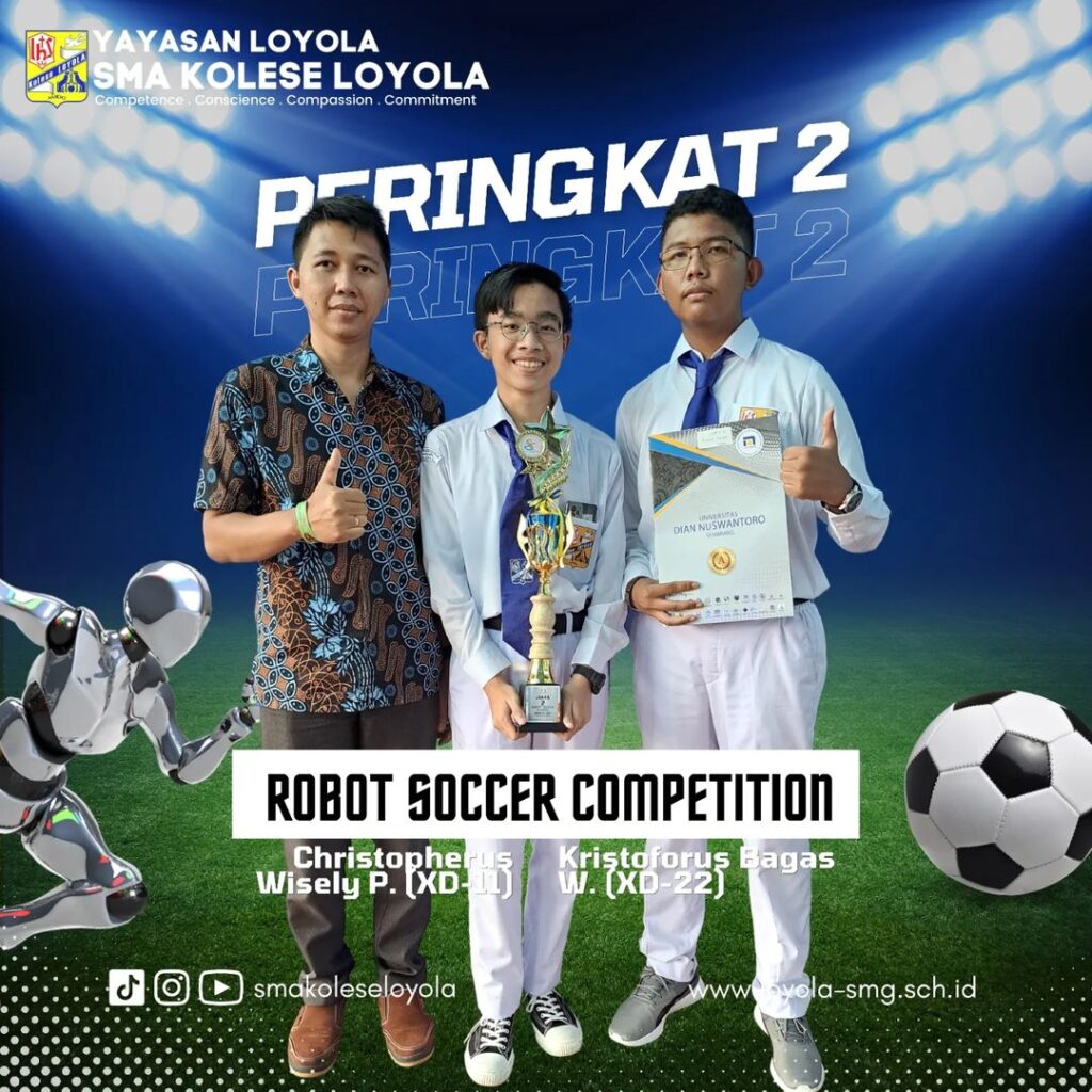 Proficiat kepada Christopherus Wisely Prasetyo (XD-11) dan Kristoforus Bagas Widyadana (XD-22) telah meraih peringkat 2 dalam Dinus Robotic Competition Robot Soccer yang diselenggarakan oleh Universitas Dian Nuswantoro Semarang pada 24-25 January 2023. Lomba Robot Soccer tingkat Nasional ini merupakan perlombaan antara 2 tim yang setiap timnya terdiri dari 2 robot. Robot-robot ini berlomba untuk memasukkan lomba ke dalam gawang lawan sebanyak mungkin, dengan menggunakan strategi dan kekompakan team. Pemenang lomba adalah tim yang paling banyak memasukkan bola ke gawang lawan dalam batas waktu yang telah ditentukan.