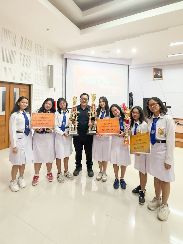 meraih juara peringkat 2 poster digital pelajar tingkat nasional dengan poster berjudul “Tradisi Tidak Bisa Dibeli dengan Uang”: Minoritas Kreatif Rumah Arwah Ong Bing Hok di Pecinan Semarang, 1850-2024.