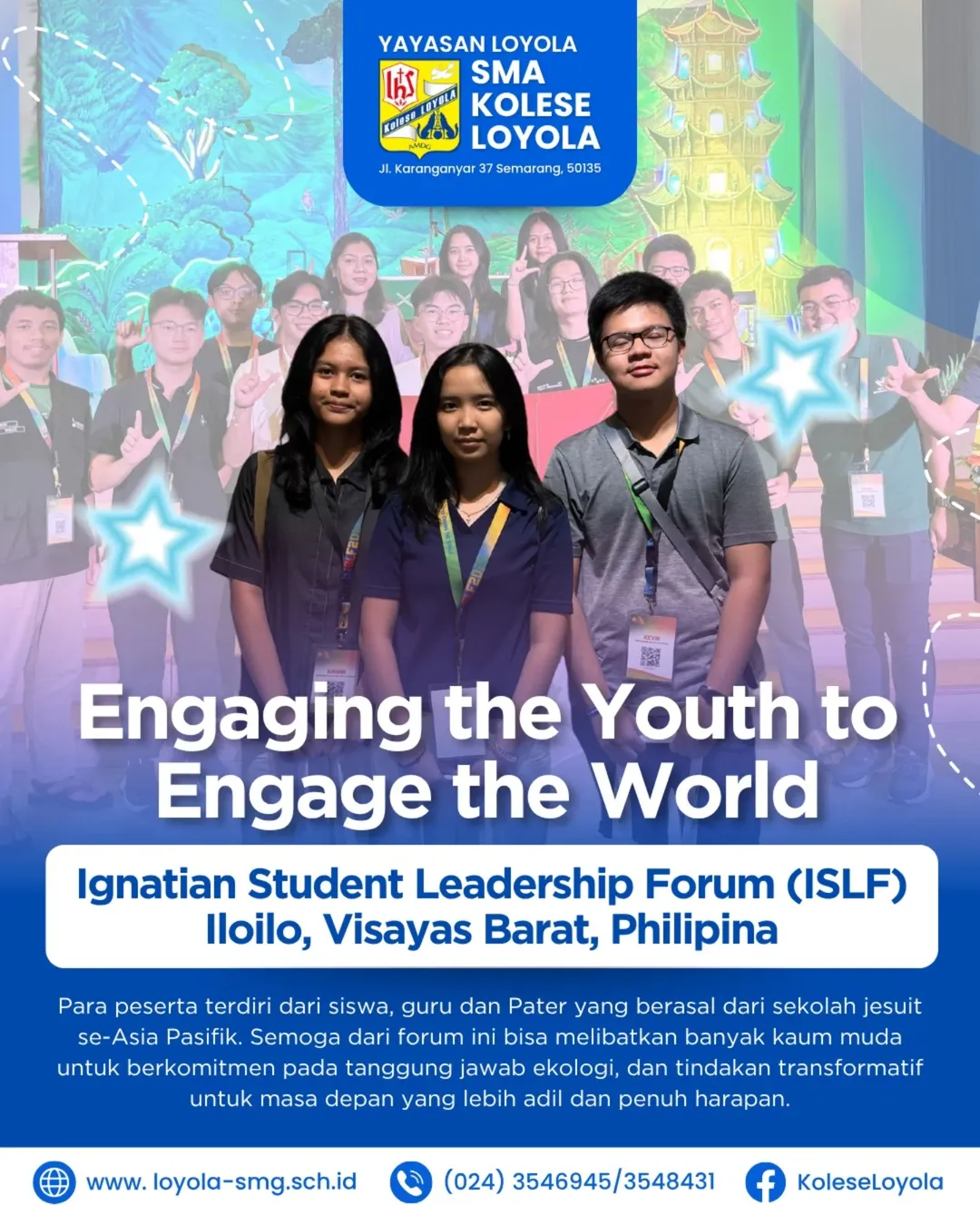 untuk mengikuti Ignatian Student Leadership Forum (ISLF) dengan tema : Engaging the Youth to Engage the World di Iloilo, Visayas Barat, Philipina.